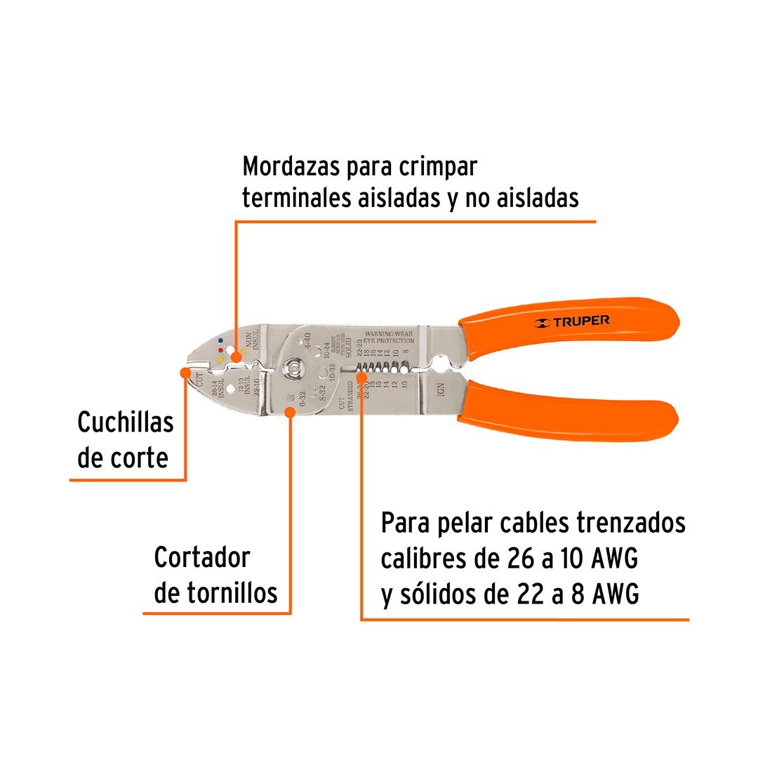 | Pela cable calibre | 22 a 8 AWG sólido | 26 a 10 AWG trenzado |