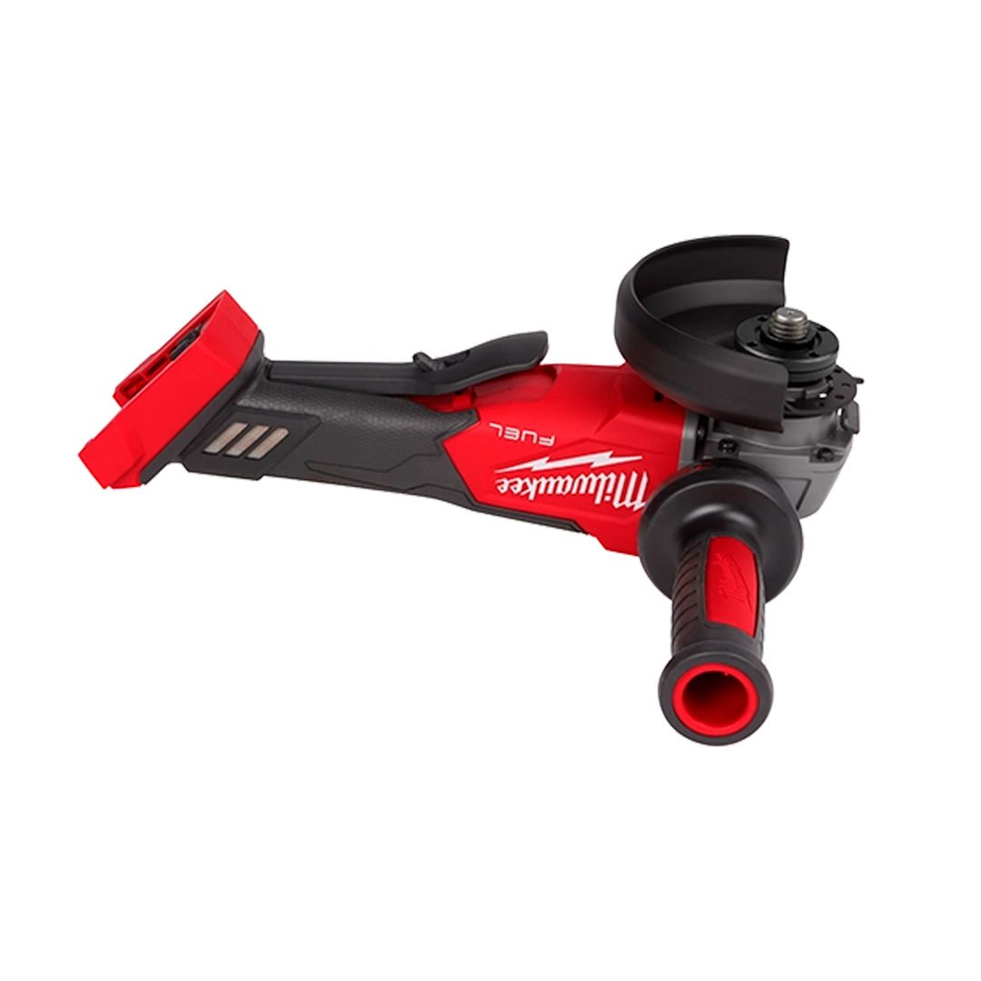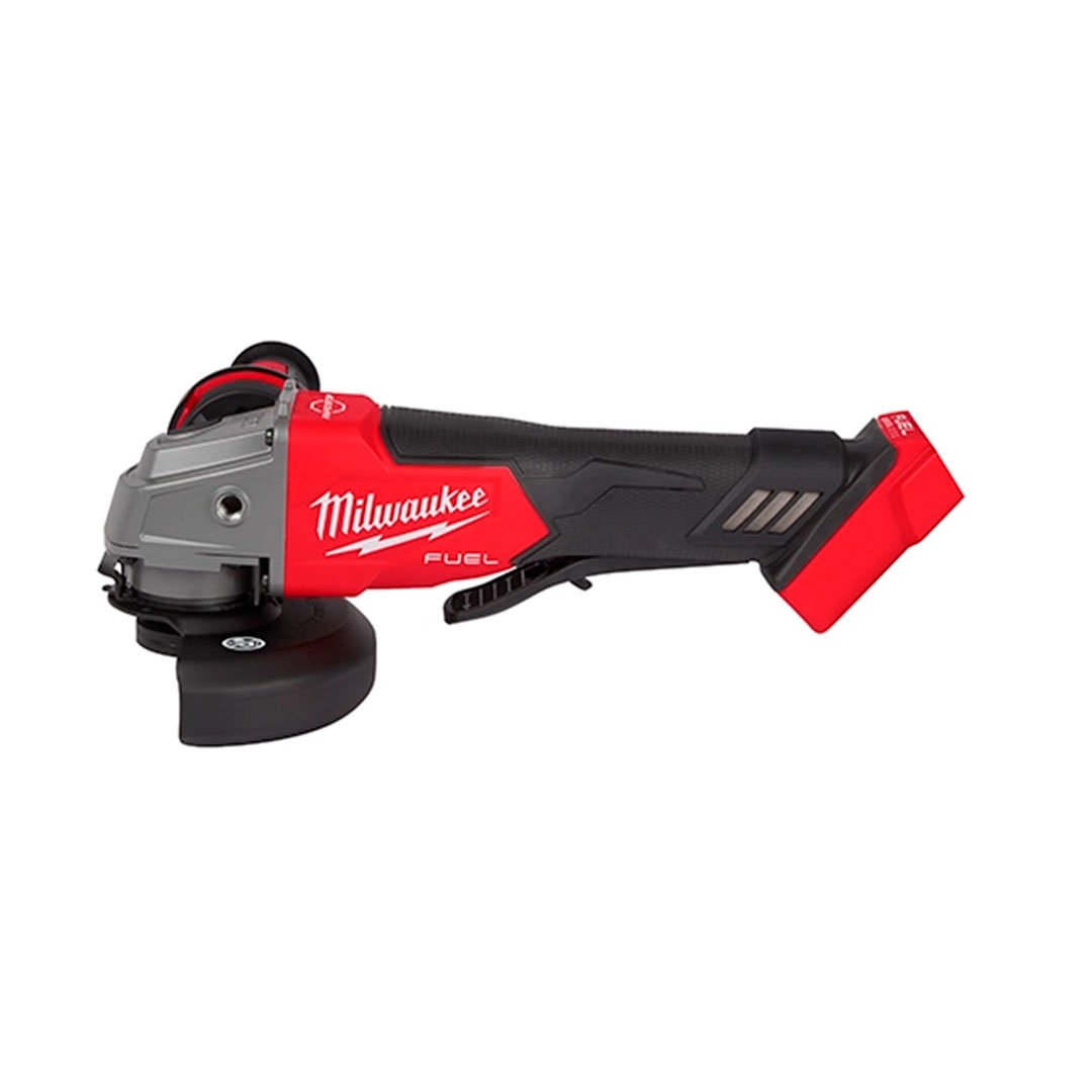 Nuestra rectificadora con freno M18 FUEL™ de 4-1/2″ / 5″, con interruptor de paleta sin bloqueo es el siguiente avance en potencia y rendimiento, ya que genera 11 A de potencia alámbrica, cortes más rápidos y ofrece hasta 135 cortes por carga. La rectificadora con freno M18 FUEL™ de 4-1/2″ / 5″ genera 11 A de potencia alámbrica, lo que le permite completar las aplicaciones de corte y rectificado más difíciles, todo con el sistema inalámbrico M18™. El motor sin escobillas POWERSTATE™ ofrece la máxima energía constante y 8,500 RPM para retirar material más rápido y aumentar la productividad. La Inteligencia REDLINK PLUS™ garantiza niveles inigualables de rendimiento, protección y compatibilidad. El freno RAPIDSTOP™ proporciona tiempos de detención en menos de 2 segundos con un disco abrasivo. La rectificadora con freno M18 FUEL™ de 4-1/2″ / 5″ incluye un embrague electrónico para la protección antirrebote, además de protección contra sobrecarga para maximizar la vida útil del motor. Las baterías M18™ REDLITHIUM™ HIGH OUTPUT™ XC6.0 (no incluidas) ofrecen un 50 % más de potencia mientras funcionan 50 % más frías que nuestras baterías M18™ REDLITHIUM™ XC y son compatibles con más de 200 herramientas en el sistema M18™. Con accesorios sin herramientas y ajustes de protección, experimentará cambios de accesorios más rápidos y menos tiempo de inactividad, mientras sigue siendo completamente compatible con los accesorios más comunes en el mercado. La rectificadora con freno M18 FUEL™ 4-1/2″ / 5″ de MILWAUKEE® lleva las rectificadoras inalámbricas al siguiente nivel en rendimiento y tiempo de operación.