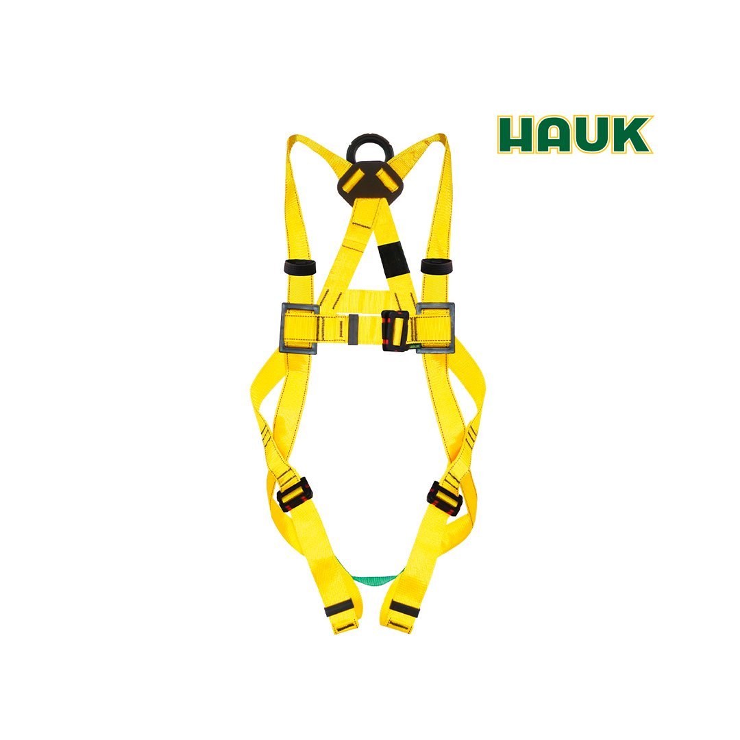 Los arneses HAUK están fabricados con cinta de fibra de poliéster de alta tenacidad, la fibra más resistente a los impactos. Las piezas dieléctricas están fabricadas de acero, recubiertas de plástico.
