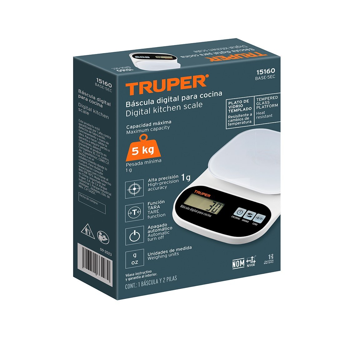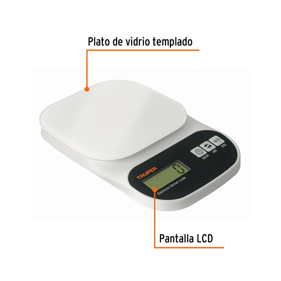 Balanza digital, plato de vidrio 5 kg TRUPER