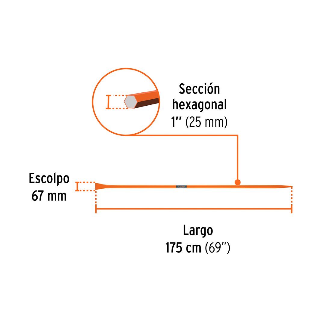 | Sección hexagonal | 1″ (25 cm) |