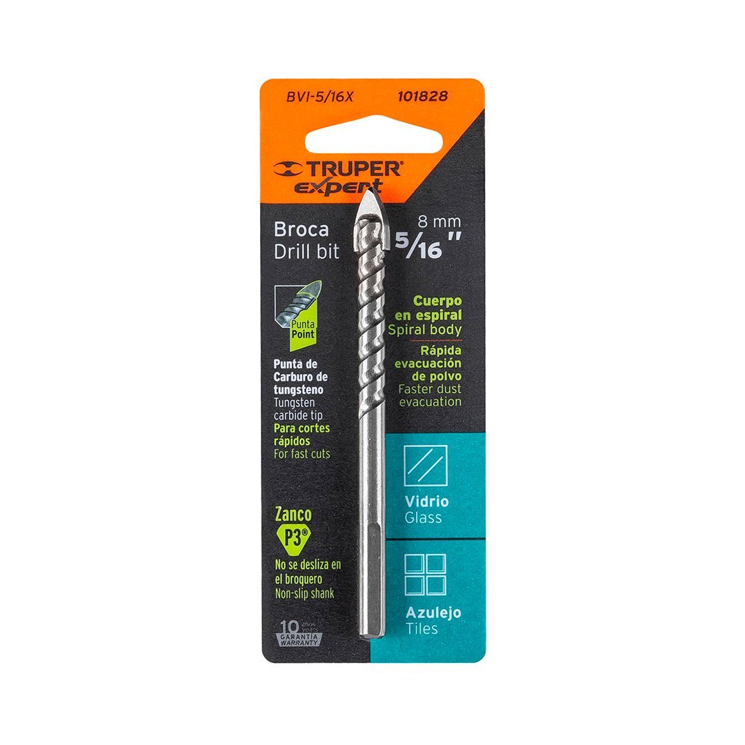 Broca para vidrio y mayólica 5/16″ cuerpo de espiral TRUPER