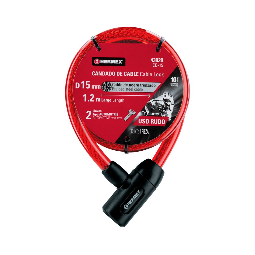 Candado de Cable con Llave 1.20 m x 15 mm HERMEX cantidad