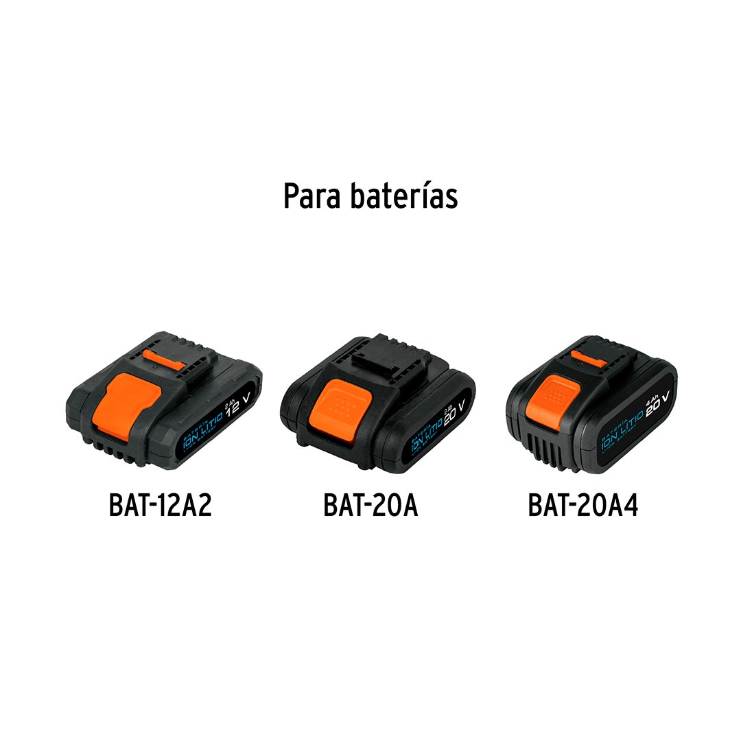• Para baterías (12 V) modelo BAT-12A2 y (20 V) modelos BAT-20A y BAT-20A4 marca Truper®