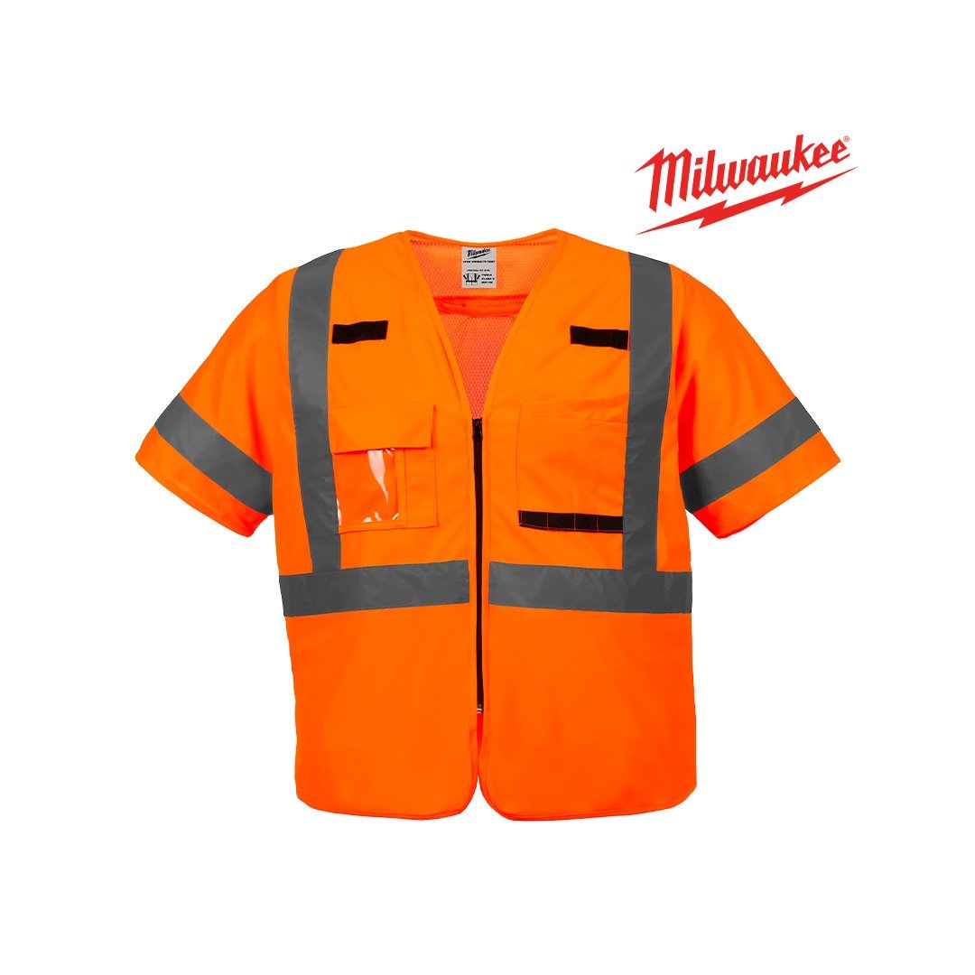 Chaleco de Seguridad Naranja de Alta Visibilidad Clase 3 Talla L/XL MILWAUKEE