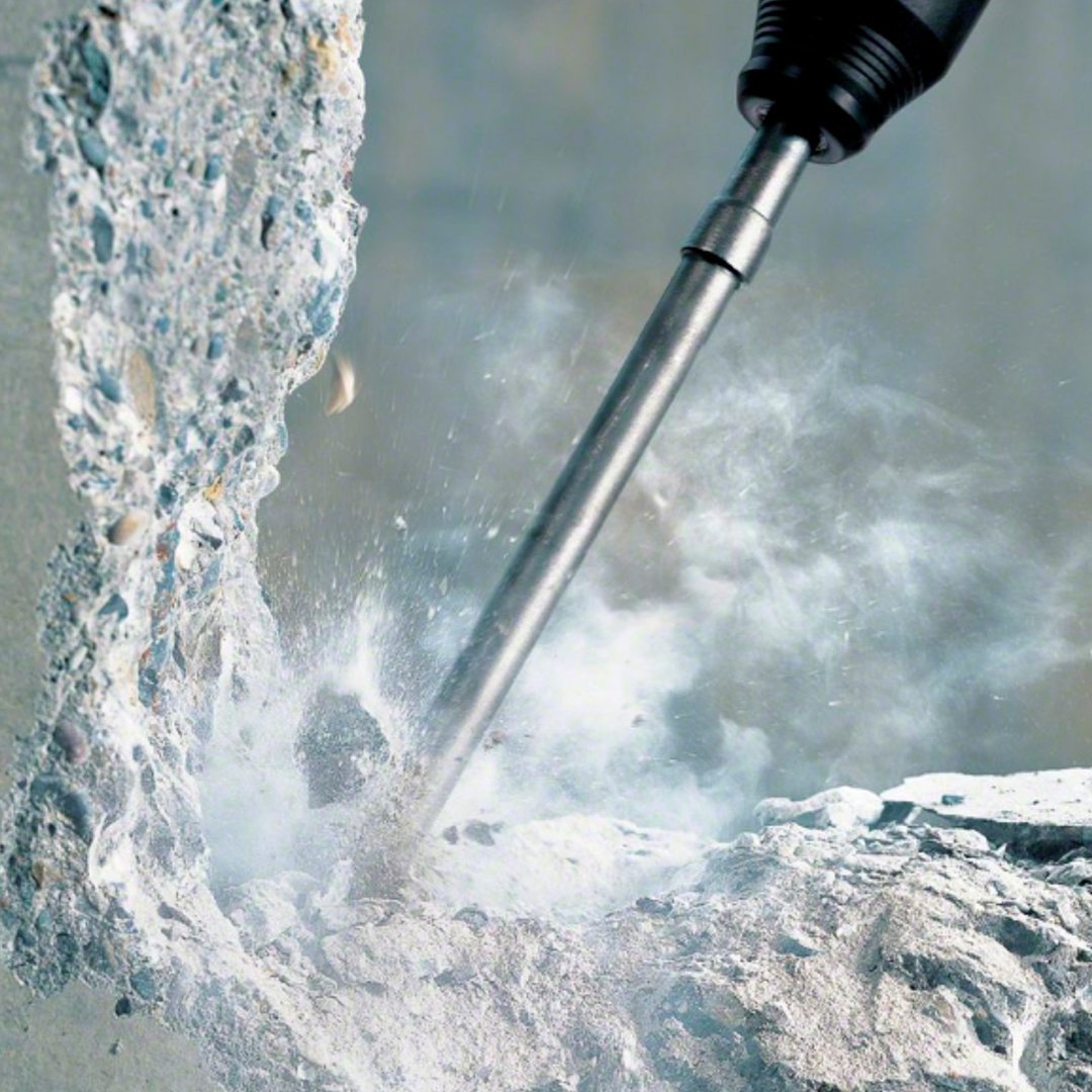 Accesorio de forma cilíndrica, cuerpo de acero endurecido para durabilidad y mayor vida util. Ideal para aplicaciones de cincelado de concreto. Encastre estándar, para martillos y rotomartillos de 5 a 12 kg en adelante.