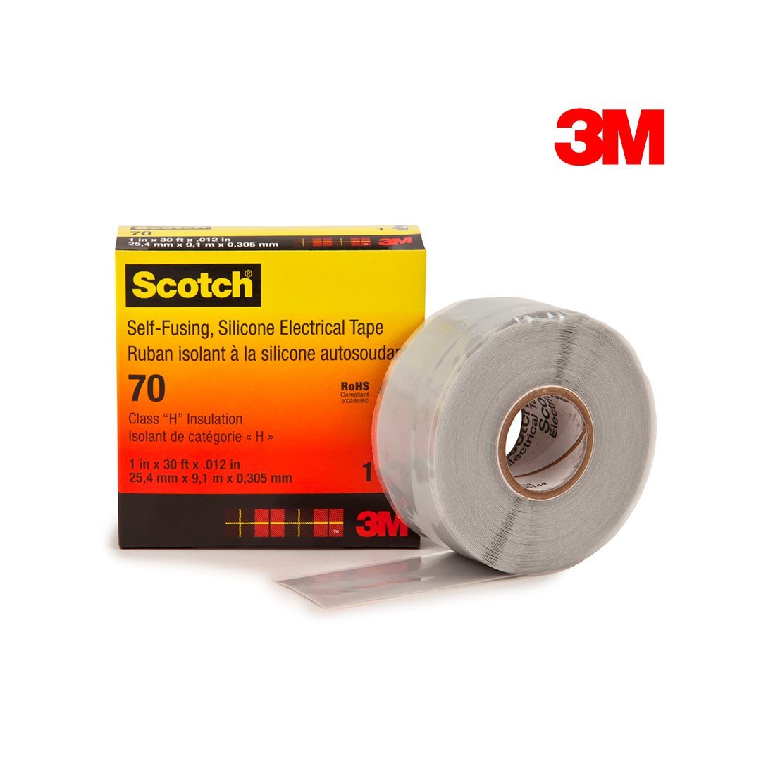 La cinta Scotch® 70 es una cinta aislante premium, de 0,30 mm (12 milésimas de pulgada) de espesor, con respaldo de caucho de silicona. Esta cinta se utiliza como capa de cinta base para facilitar el reingreso de las conexiones. Soporta temperaturas de hasta 180 °C (356 °F).
