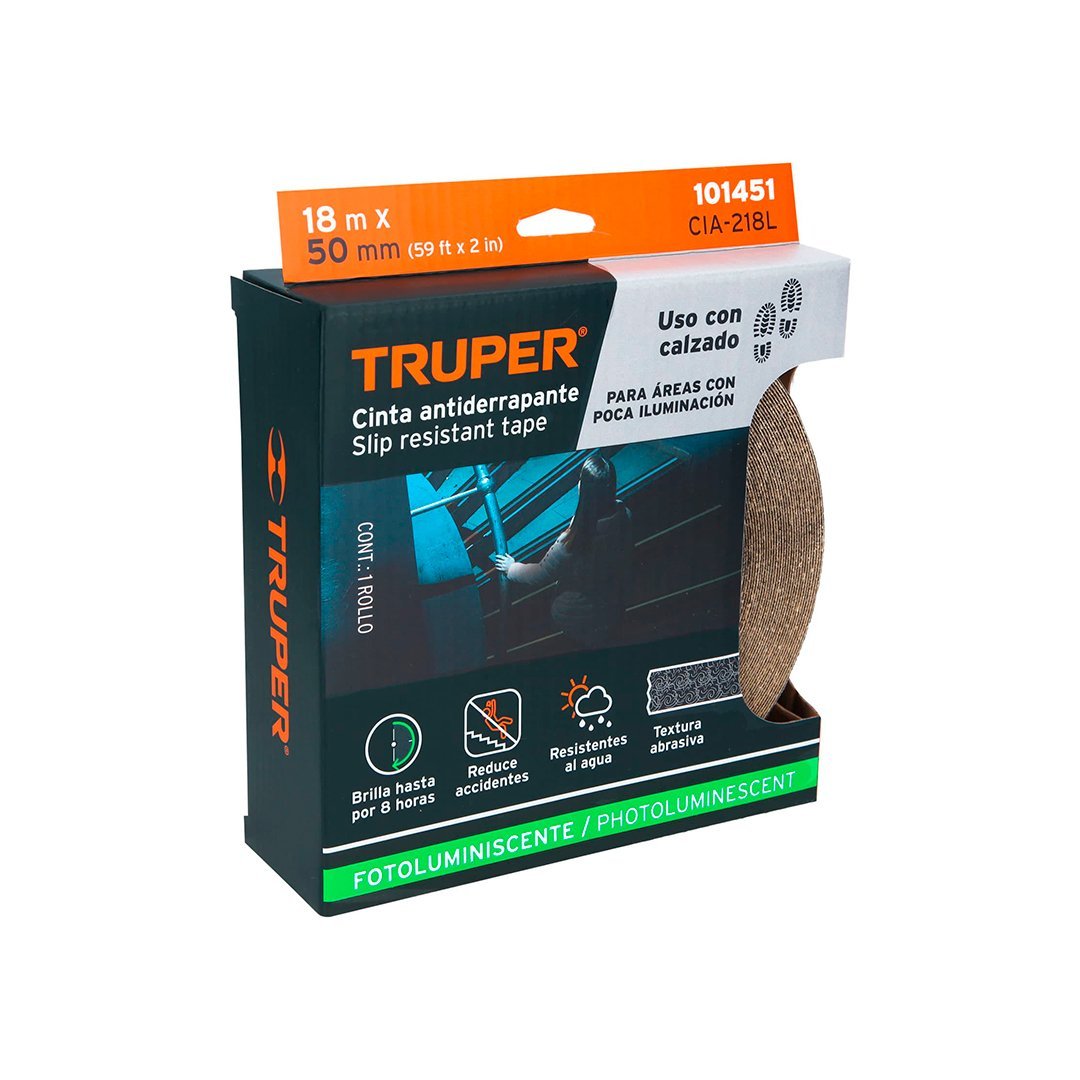 Cinta antideslizante negro fotoluminiscente con abrasivo 18 m TRUPER cantidad