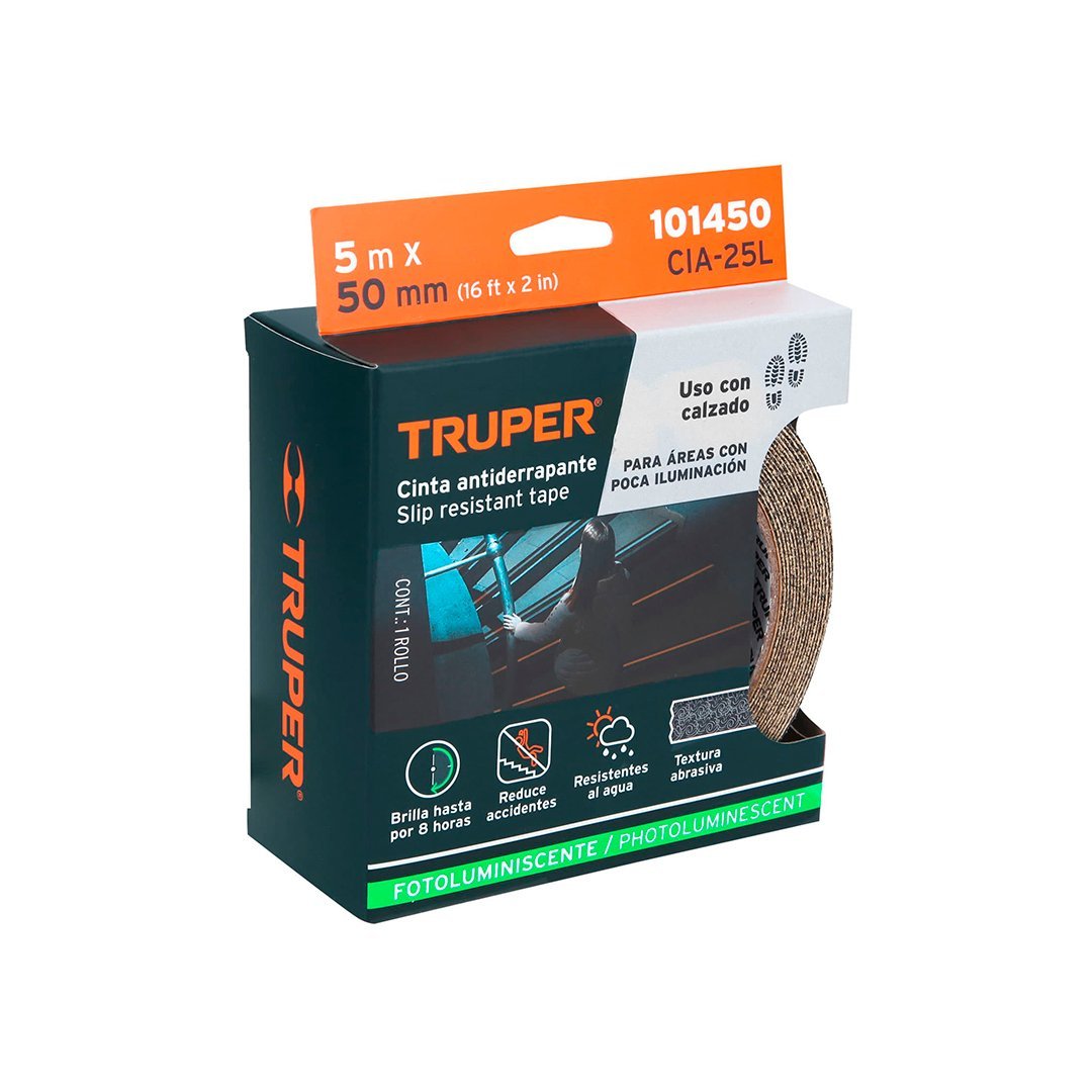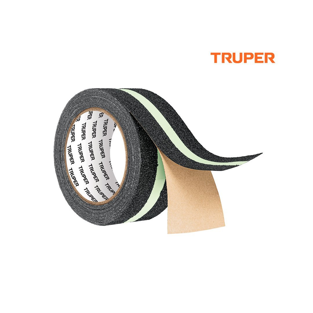 Cinta antideslizante negro fotoluminiscente con abrasivo 5m TRUPER