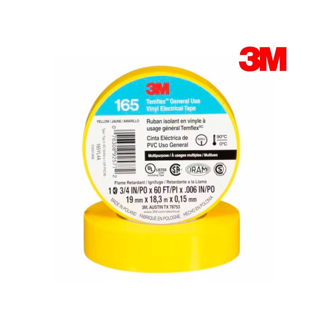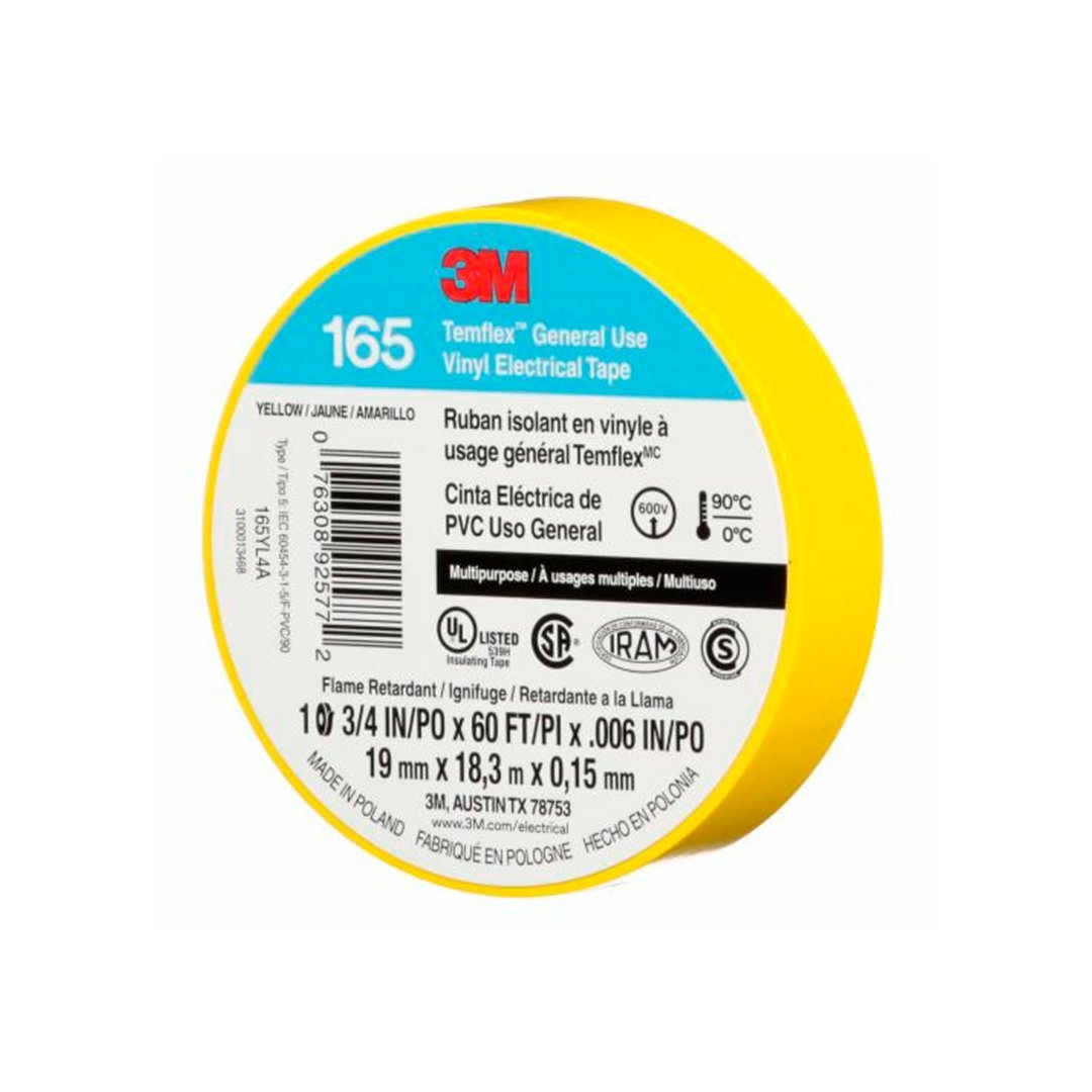 Cinta Eléctrica de PVC Temflex 165 Amarillo 19 mm x 18.3 mts 3M