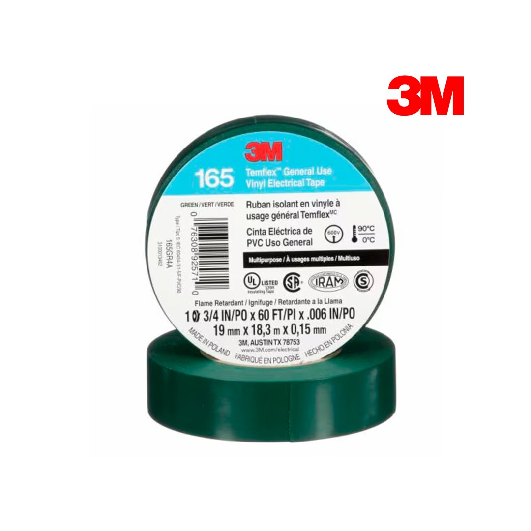 Cinta Eléctrica de PVC Temflex 165 Verde 19 mm x 18.3 mts 3M
