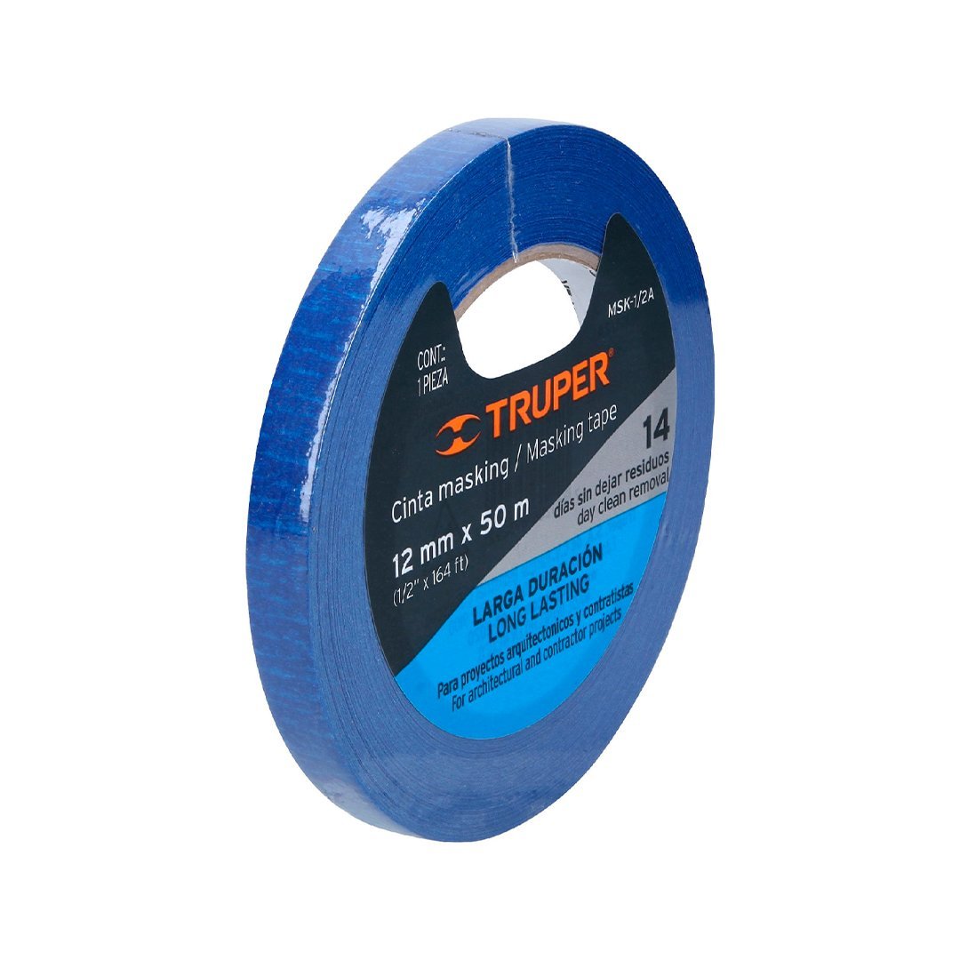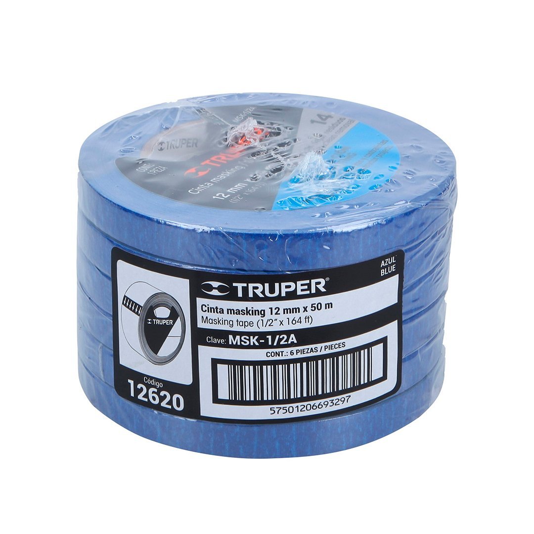 Cinta masking tape azul de 12 mm x 50 m para pintor TRUPER