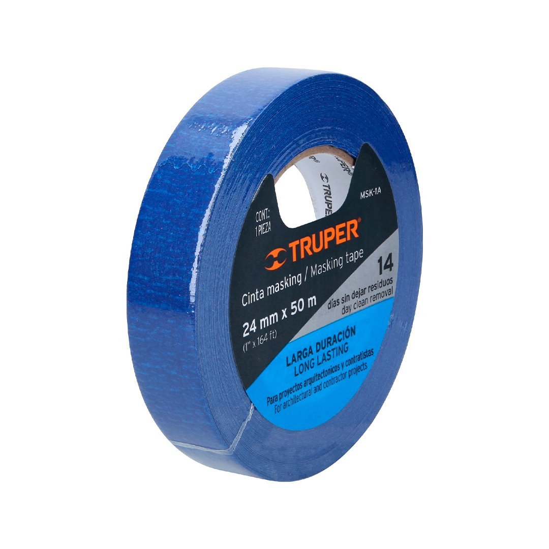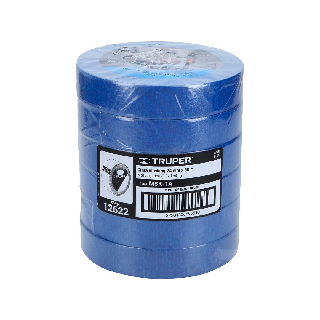 Cinta masking tape azul de 24 mm x 50 m para pintor TRUPER cantidad