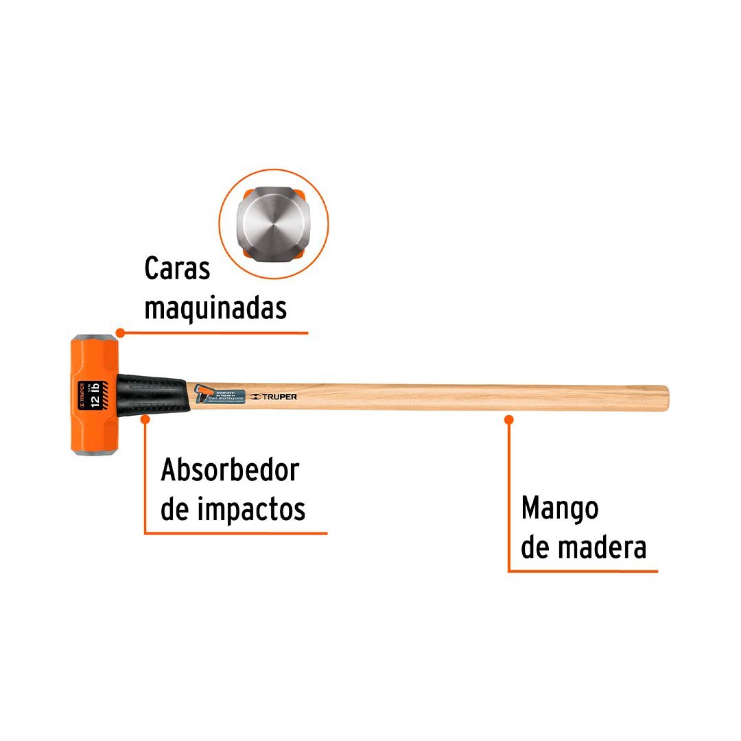 Comba octogonal 14 lb mango de madera 36" TRUPER