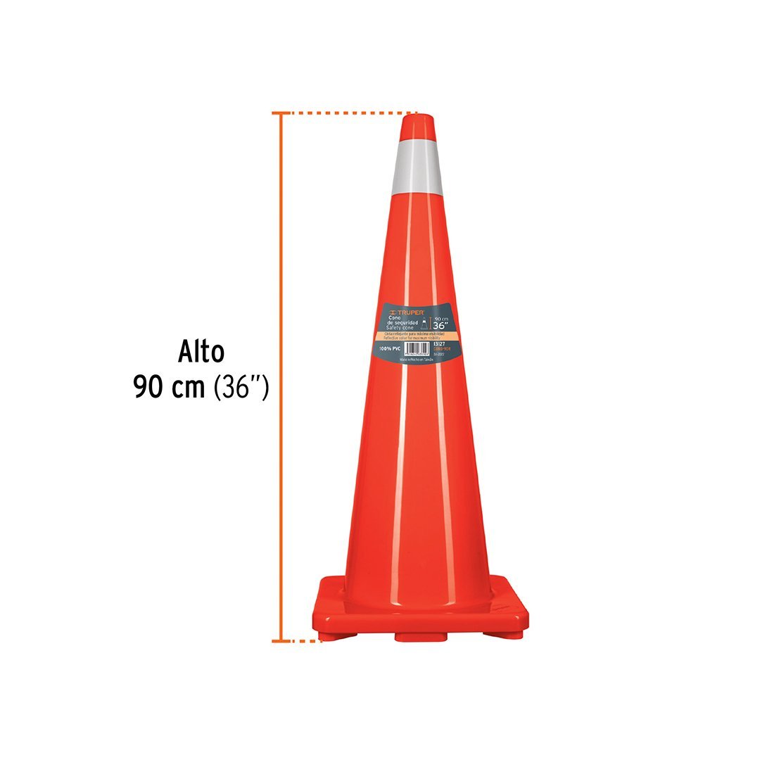 Cono de seguridad de PVC de 90 cm con reflectivos TRUPER