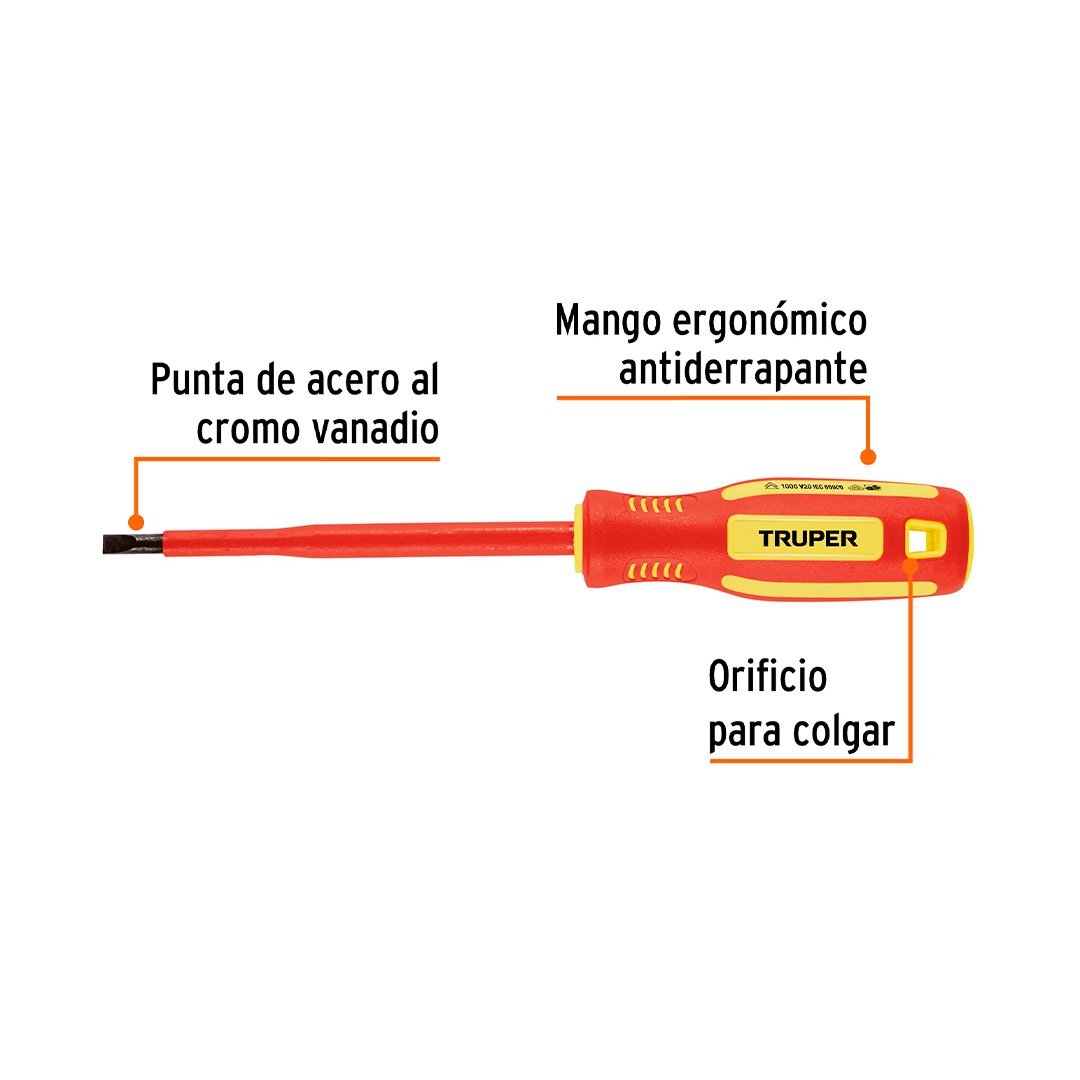 Desarmador plano dieléctrico 7/32″ x 5″ TRUPER