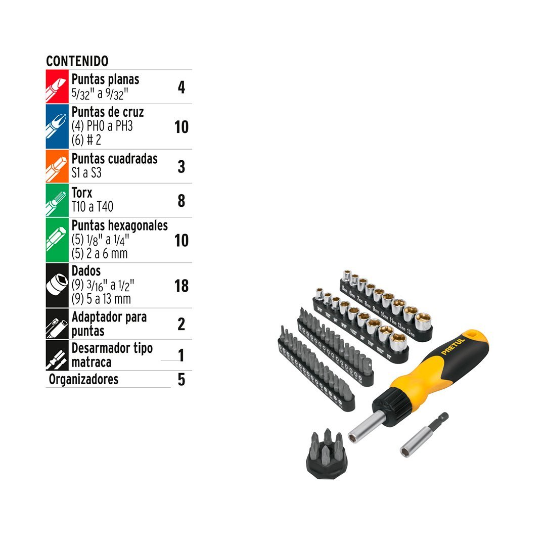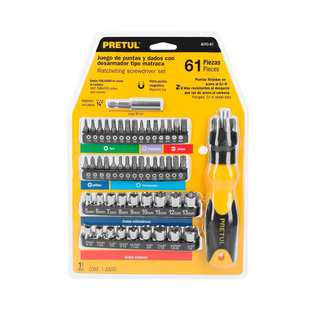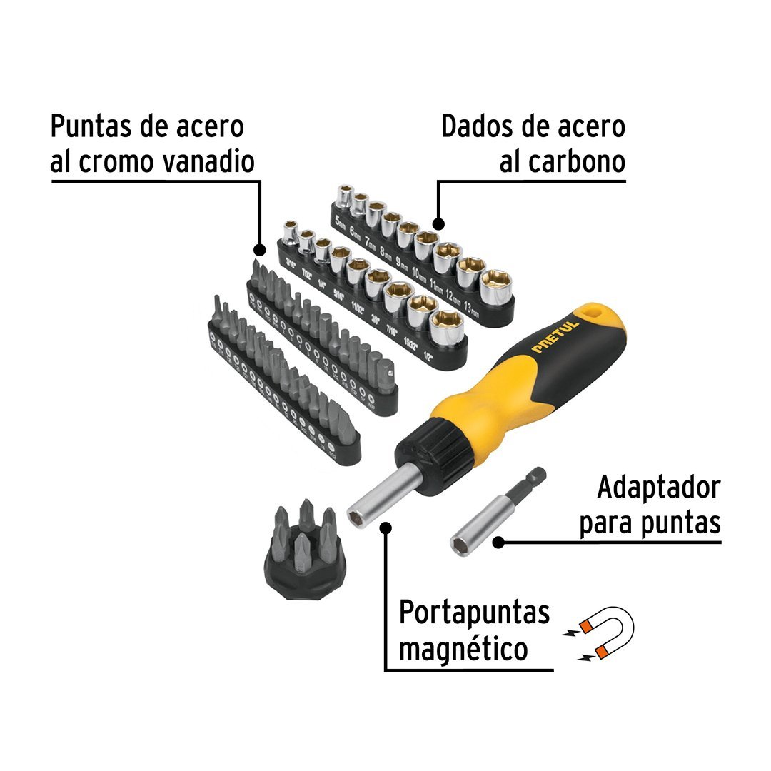 Desarmador tipo ratchet con 35 puntas y 18 dados PRETUL cantidad