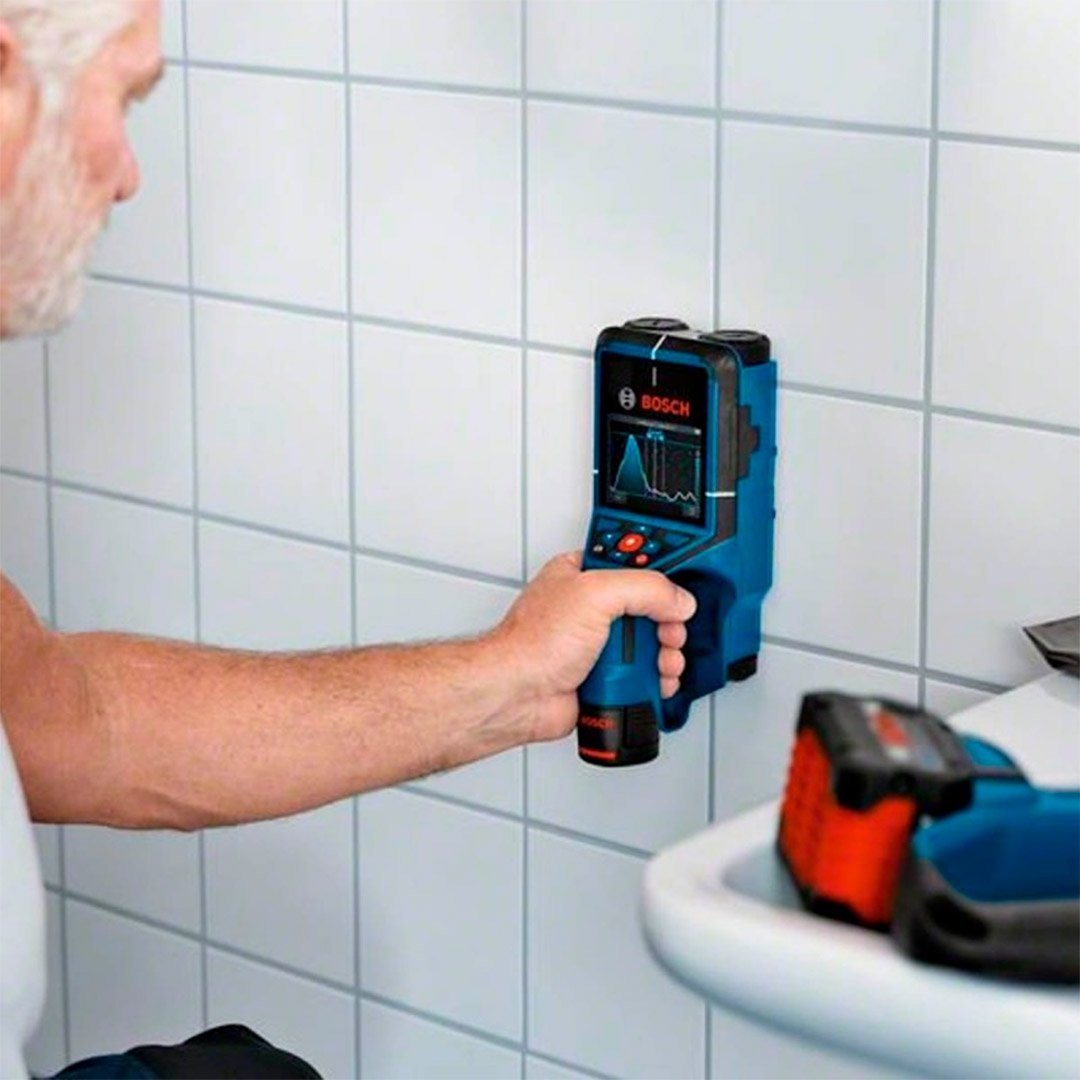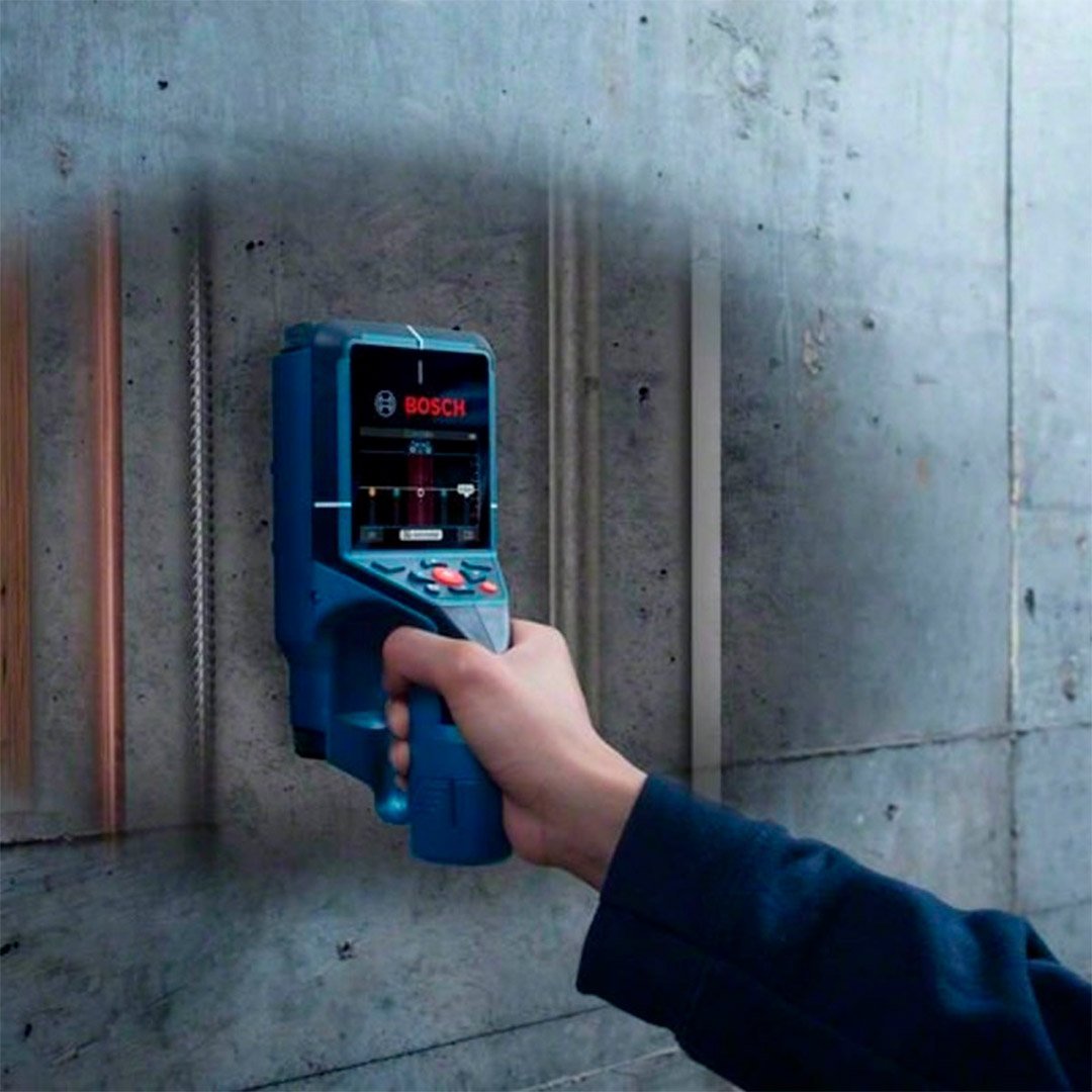 • Detector de hasta 20 cm para todos los tipos de paredes, detectando incluso infiltraciones de agua. Detección e indicación de profundidad de metales, cables energizados, madera y tuberías.