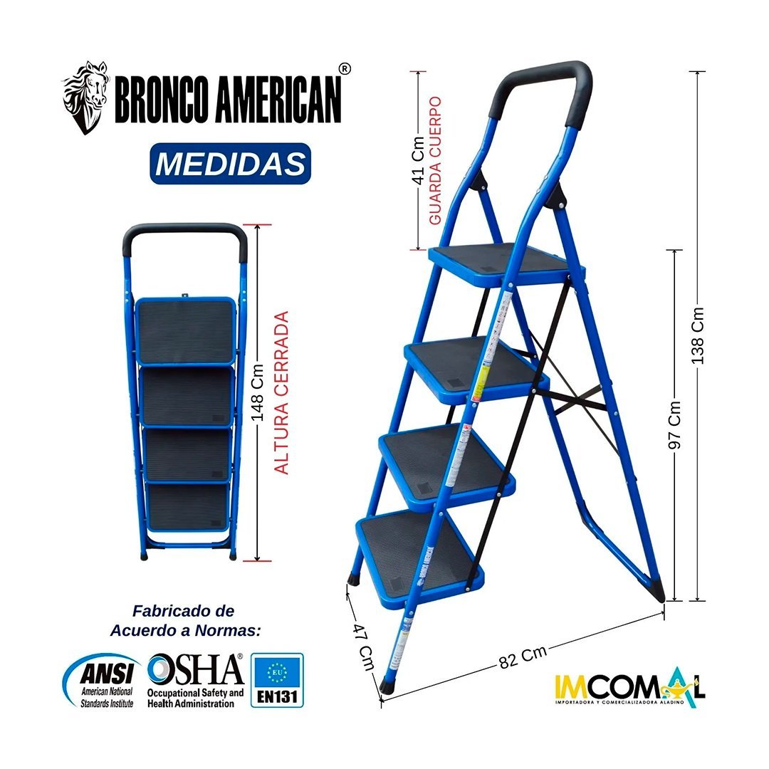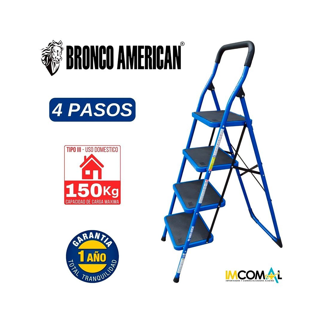 Escalera Acero Tipo Taburete de 4 Pasos BRONCO AMERICAN