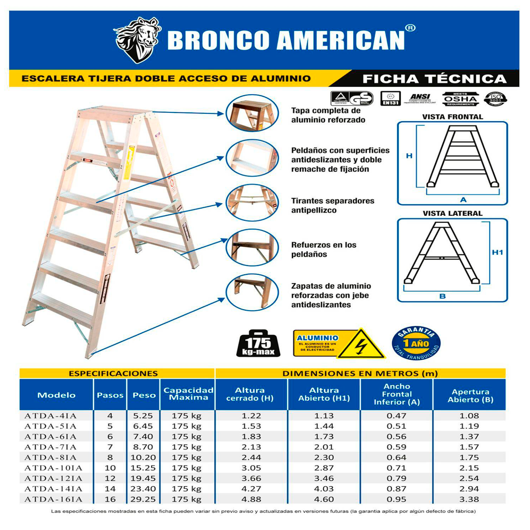 Escalera Aluminio Tijera Doble Ascenso de 6 Pasos-Bronco American Ladder