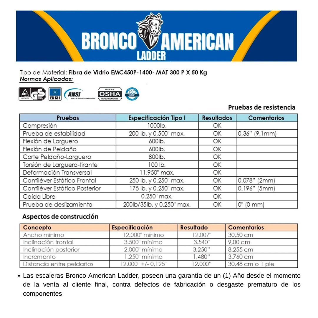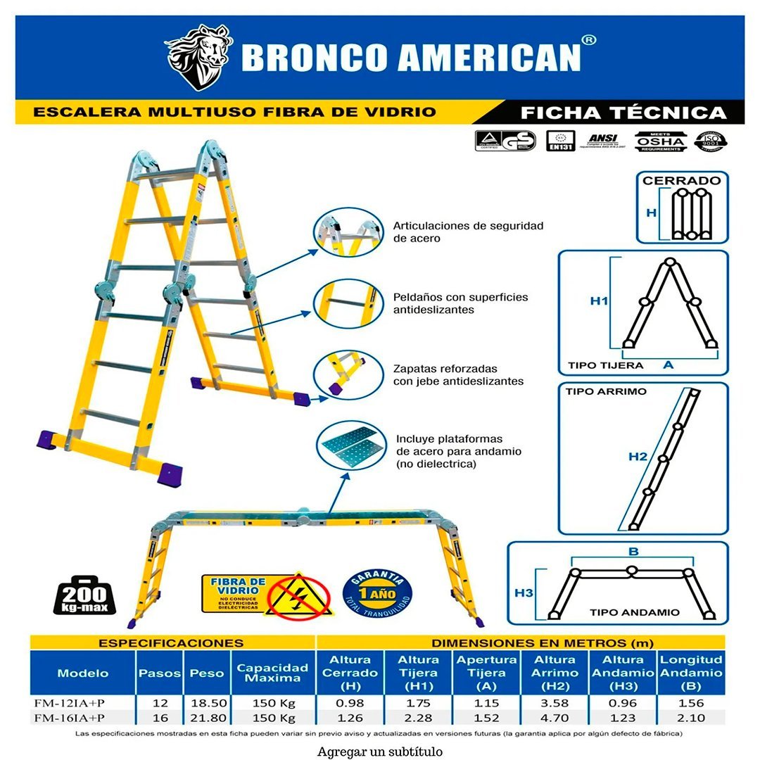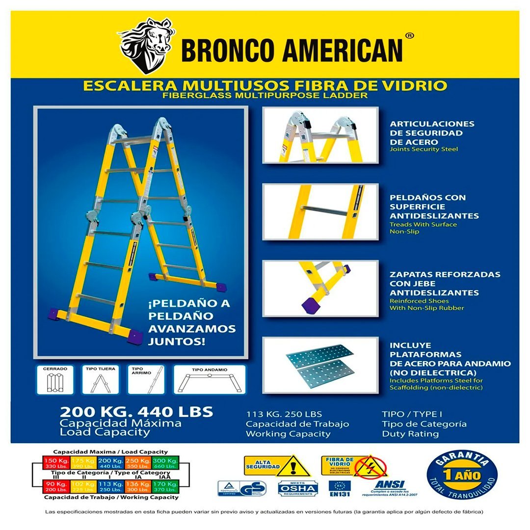 Escalera Fibra de Vidrio Multiposición de 12 Pasos 4x4 Bronco American Ladder cantidad
