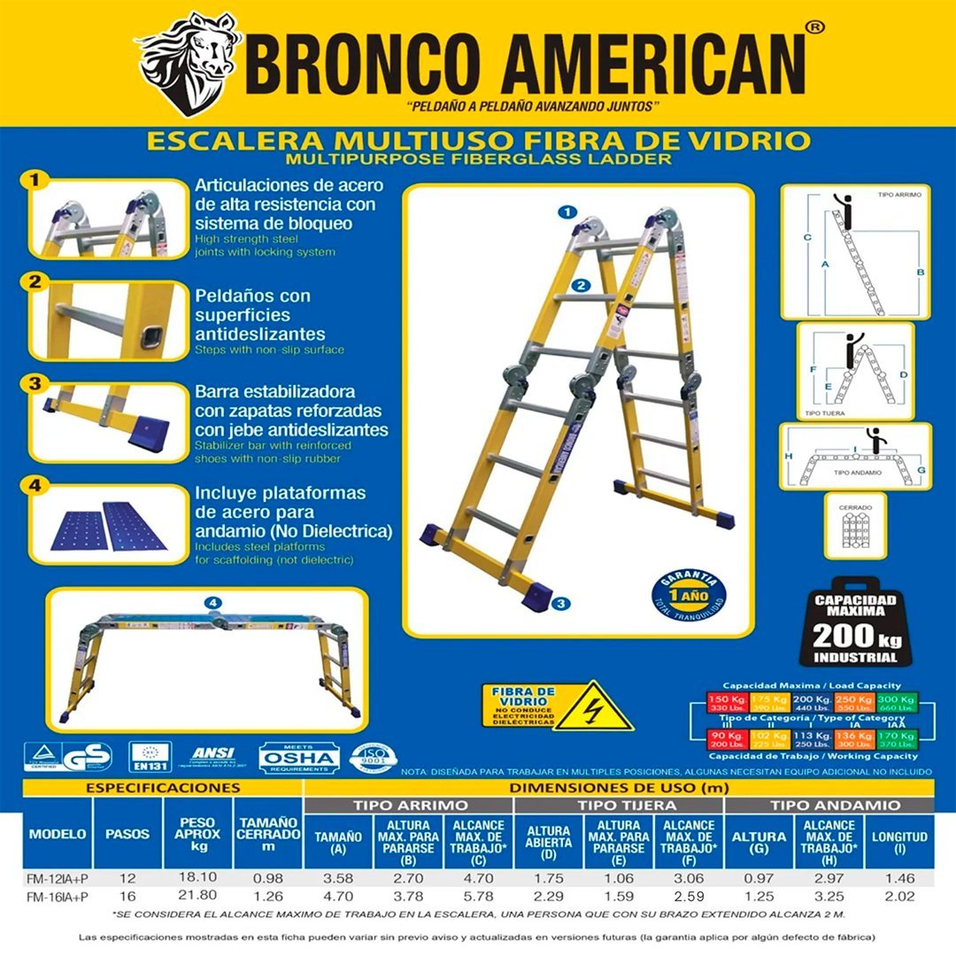 Escalera Fibra de Vidrio Multiposición de 16 Pasos 4x4 Bronco American Ladder cantidad