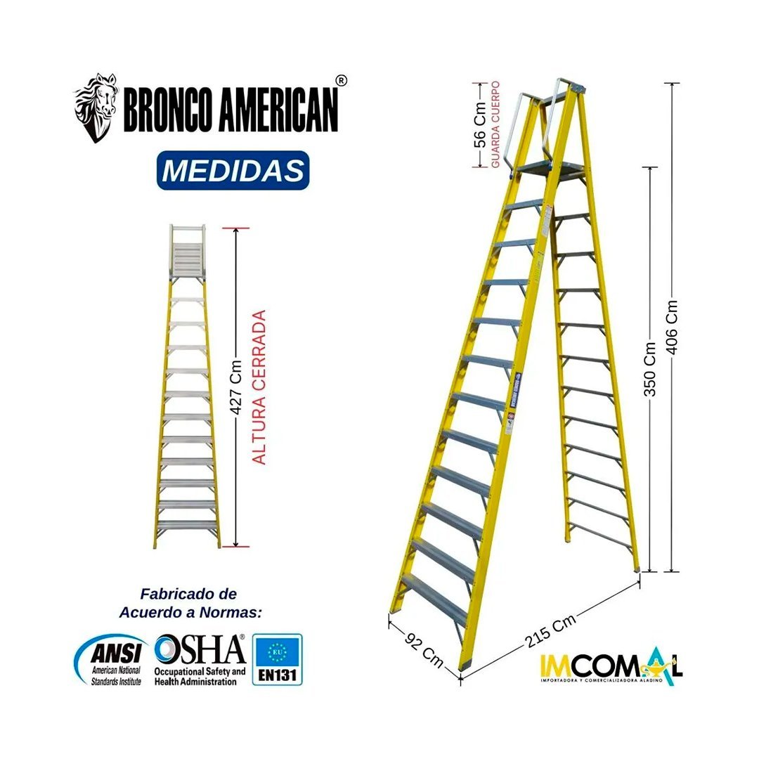 Escalera Fibra de Vidrio Tijera Doble Ascenso de 16 Pasos Bronco American Ladder