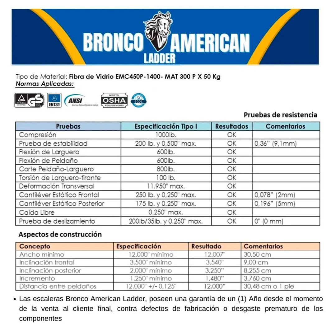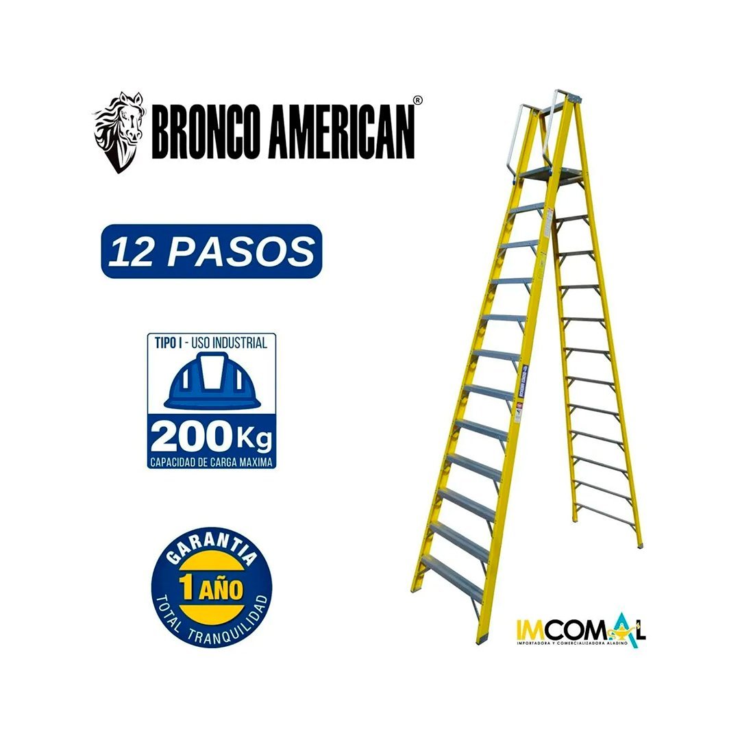 Escalera Fibra de Vidrio Tijera con Plataforma de 12 Pasos Bronco American Ladder