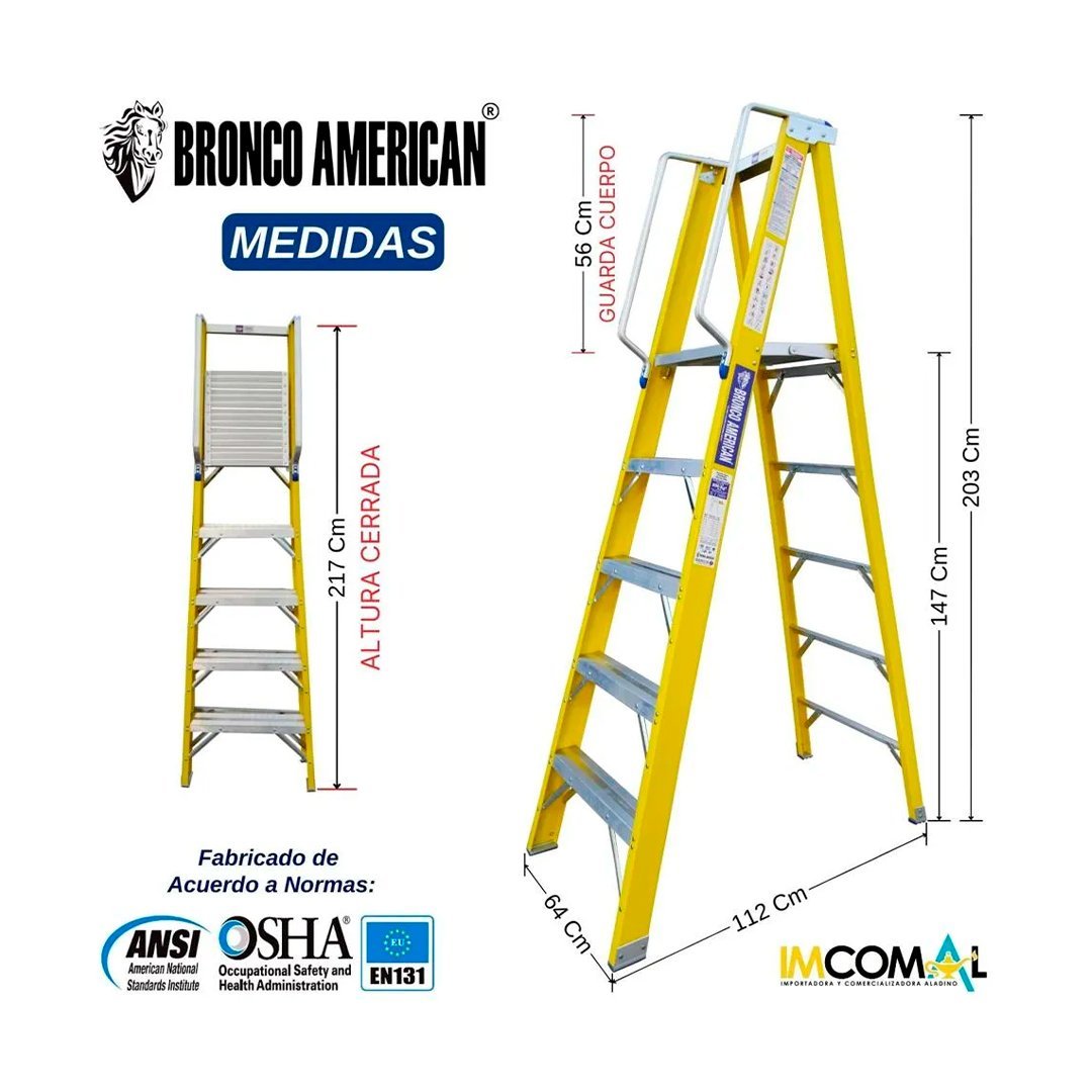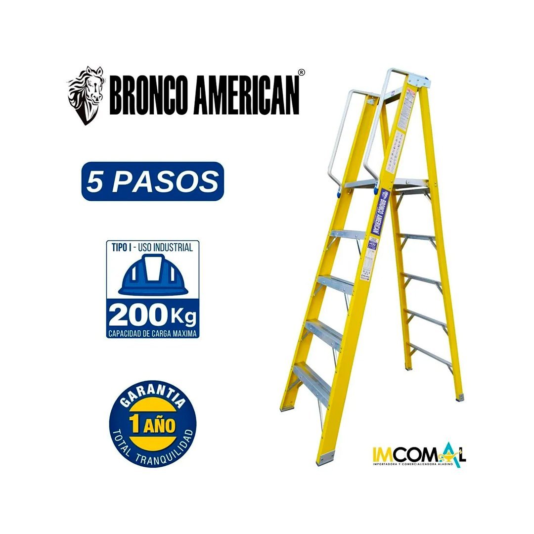 Escalera Fibra de Vidrio Tijera con Plataforma de 5 Pasos Bronco American Ladder