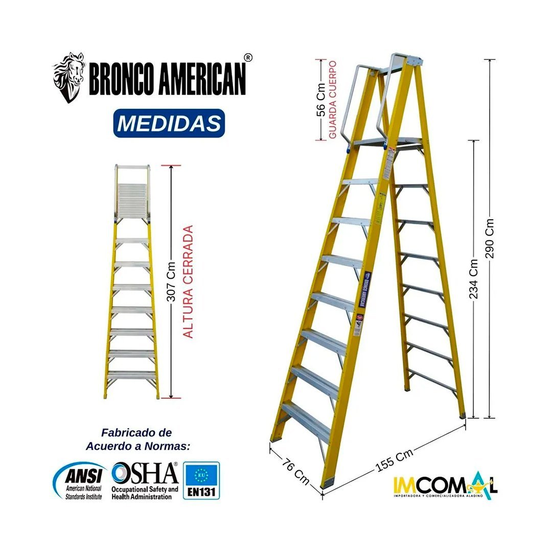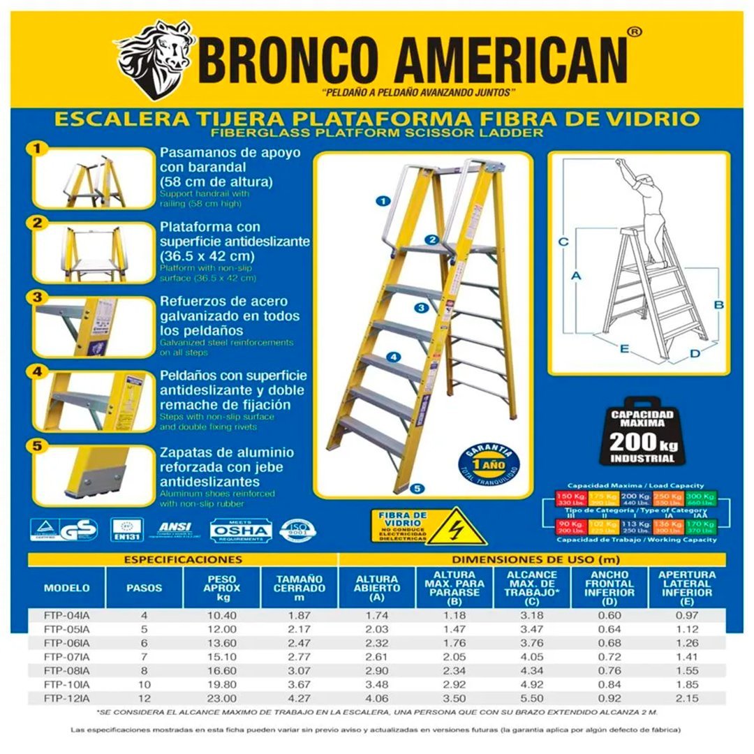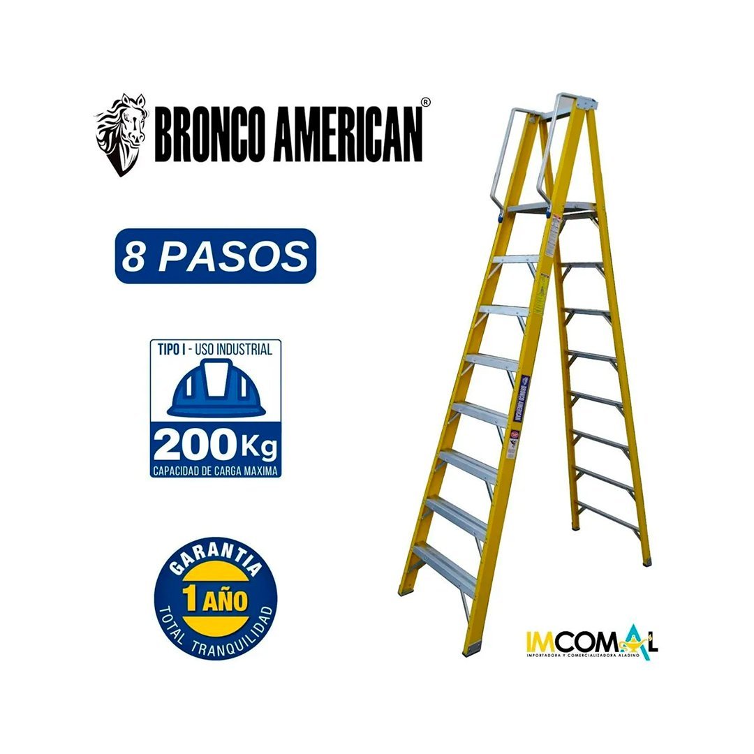 Escalera Fibra de Vidrio Tijera con Plataforma de 8 Pasos Bronco American Ladder cantidad