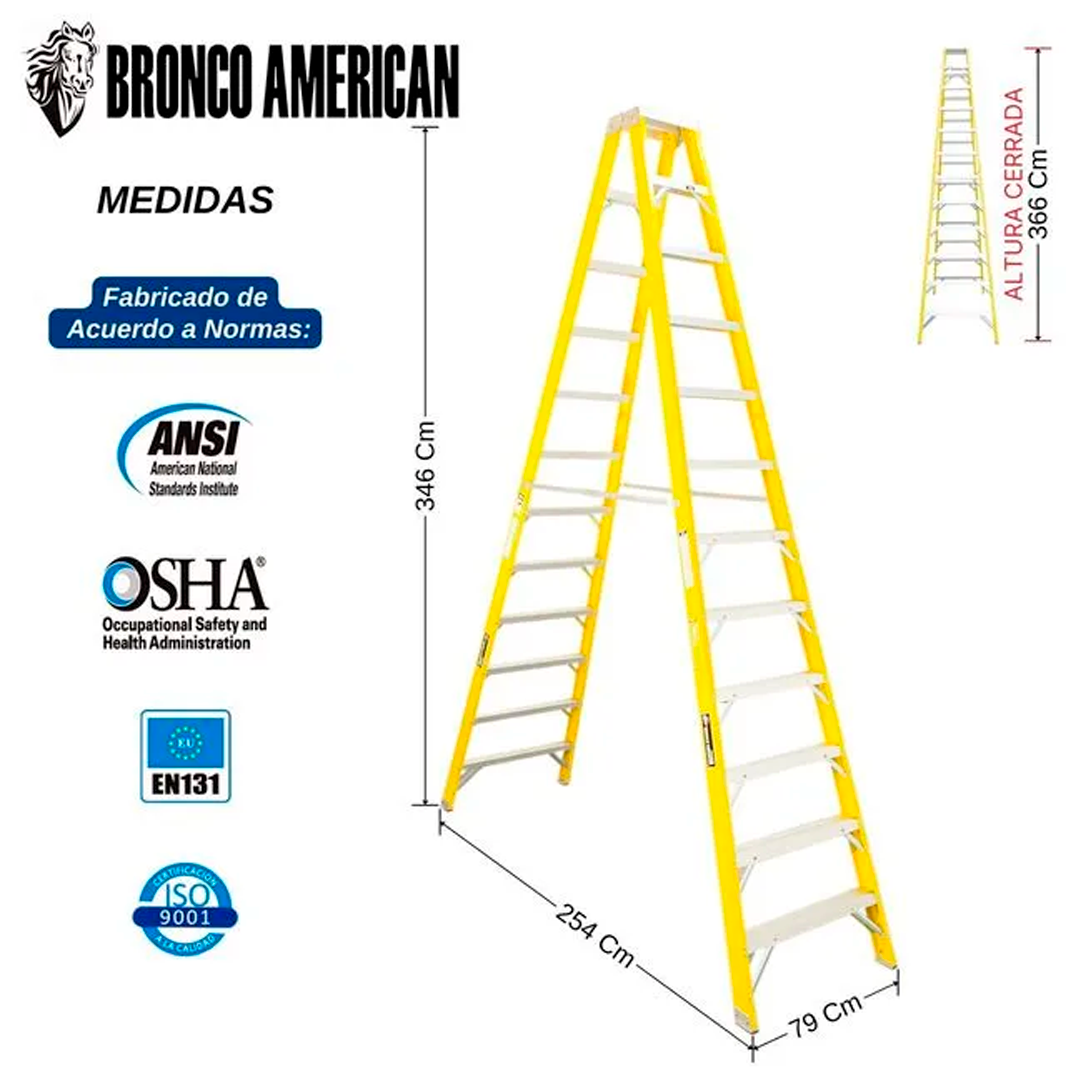 Escalera Fibra de Vidrio Tijera Doble Ascenso de 12 Pasos Bronco American Ladder