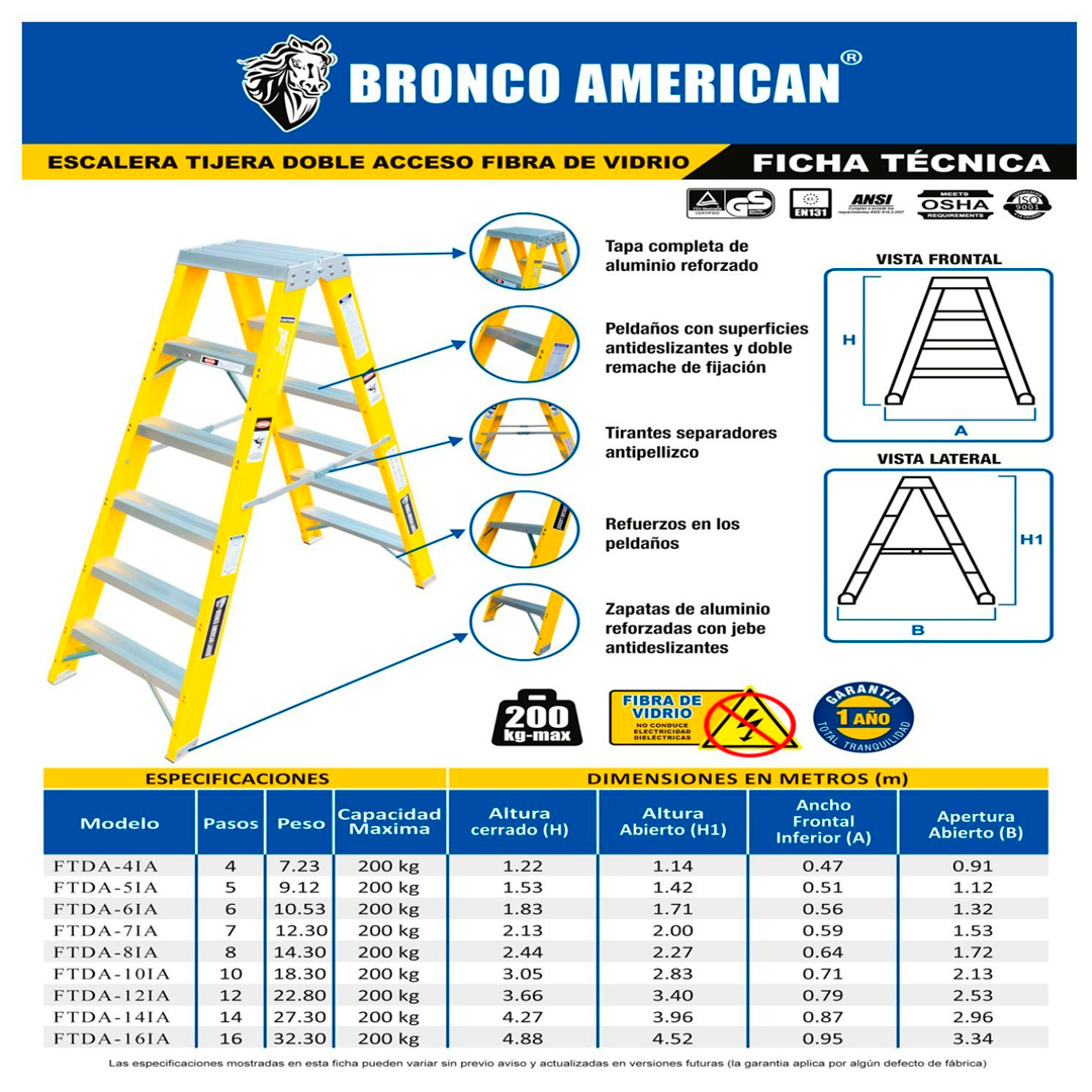 Sé el primero en valorar “Escalera Fibra de Vidrio Tijera Doble Ascenso de 12 Pasos Bronco American Ladder”