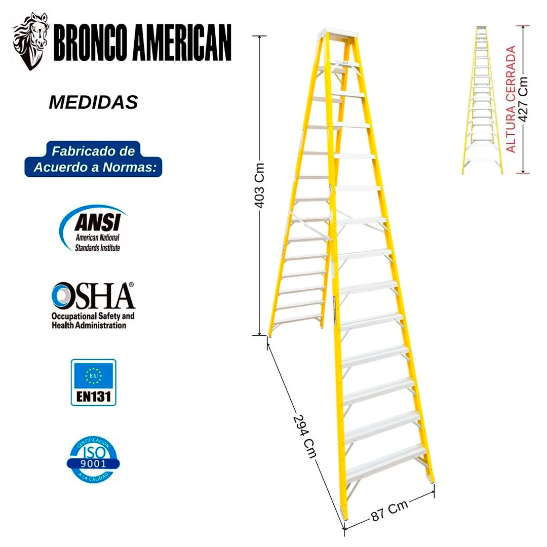 Escalera Fibra de Vidrio Tijera Doble Ascenso de 14 Pasos Bronco American Ladder