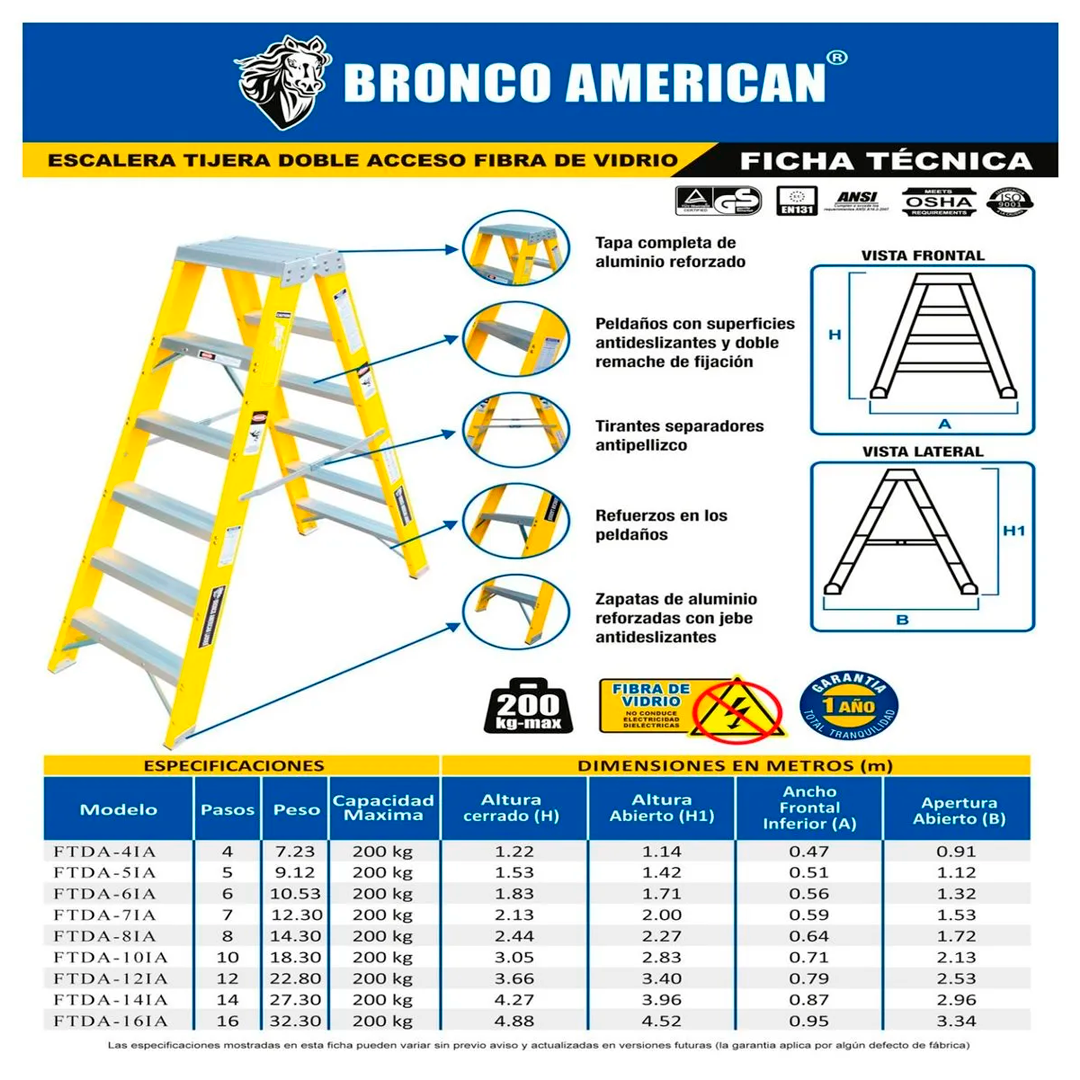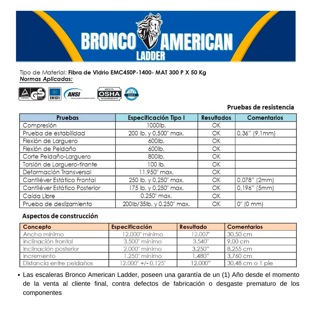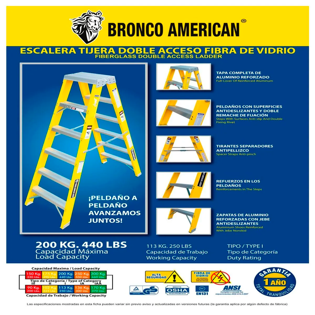 Sé el primero en valorar “Escalera Fibra de Vidrio Tijera Doble Ascenso de 14 Pasos Bronco American Ladder”