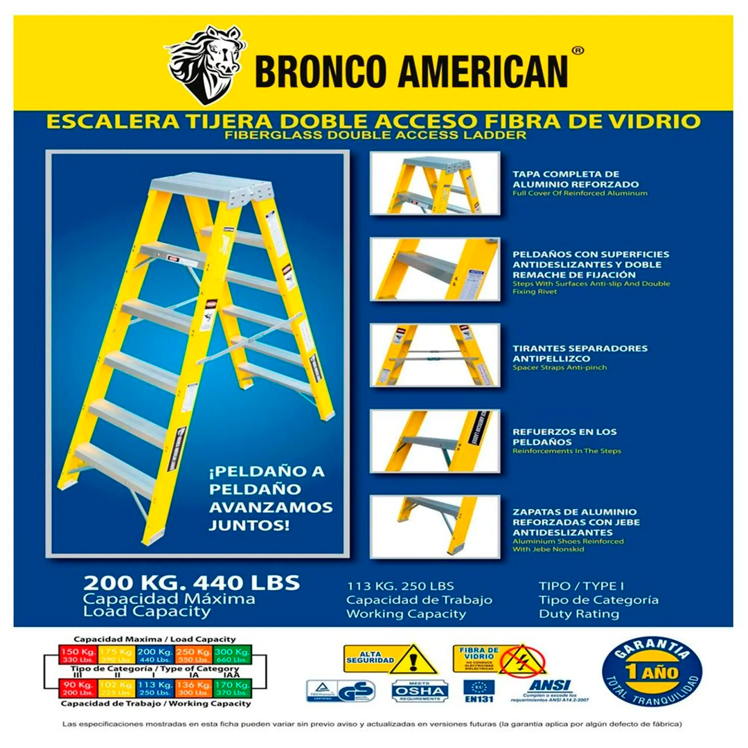 Escalera Fibra de Vidrio Tijera Doble Ascenso de 16 Pasos Bronco American Ladder