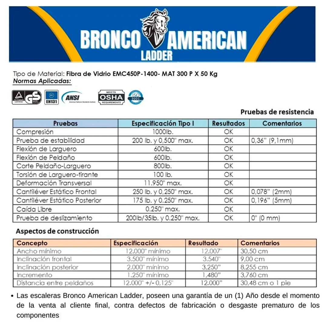 Sé el primero en valorar “Escalera Fibra de Vidrio Tijera Doble Ascenso de 16 Pasos Bronco American Ladder”