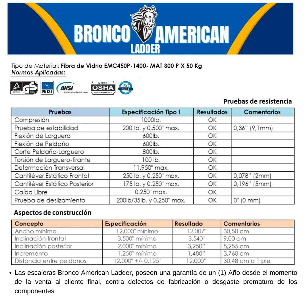 Escalera Fibra de Vidrio Tijera Doble Ascenso de 6 Pasos Bronco American Ladder