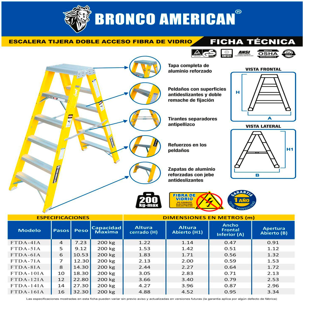 | Incluye | Una Escalera Fibra de Vidrio Tijera Doble Ascenso de 6 Pasos |