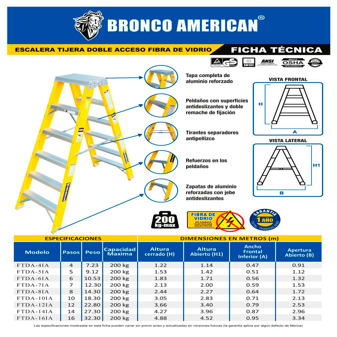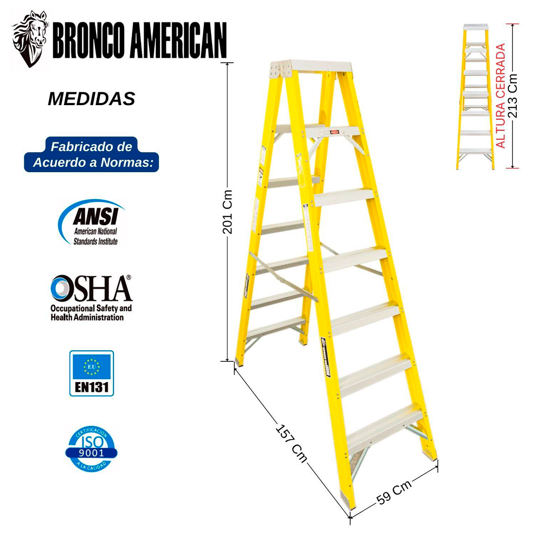 Escalera Fibra de Vidrio Tijera Doble Ascenso de 7 Pasos Bronco American Ladder