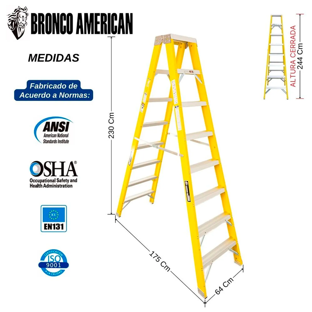 Escalera Fibra de Vidrio Tijera Doble Ascenso de 8 Pasos Bronco American Ladder