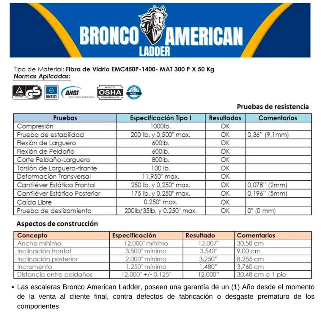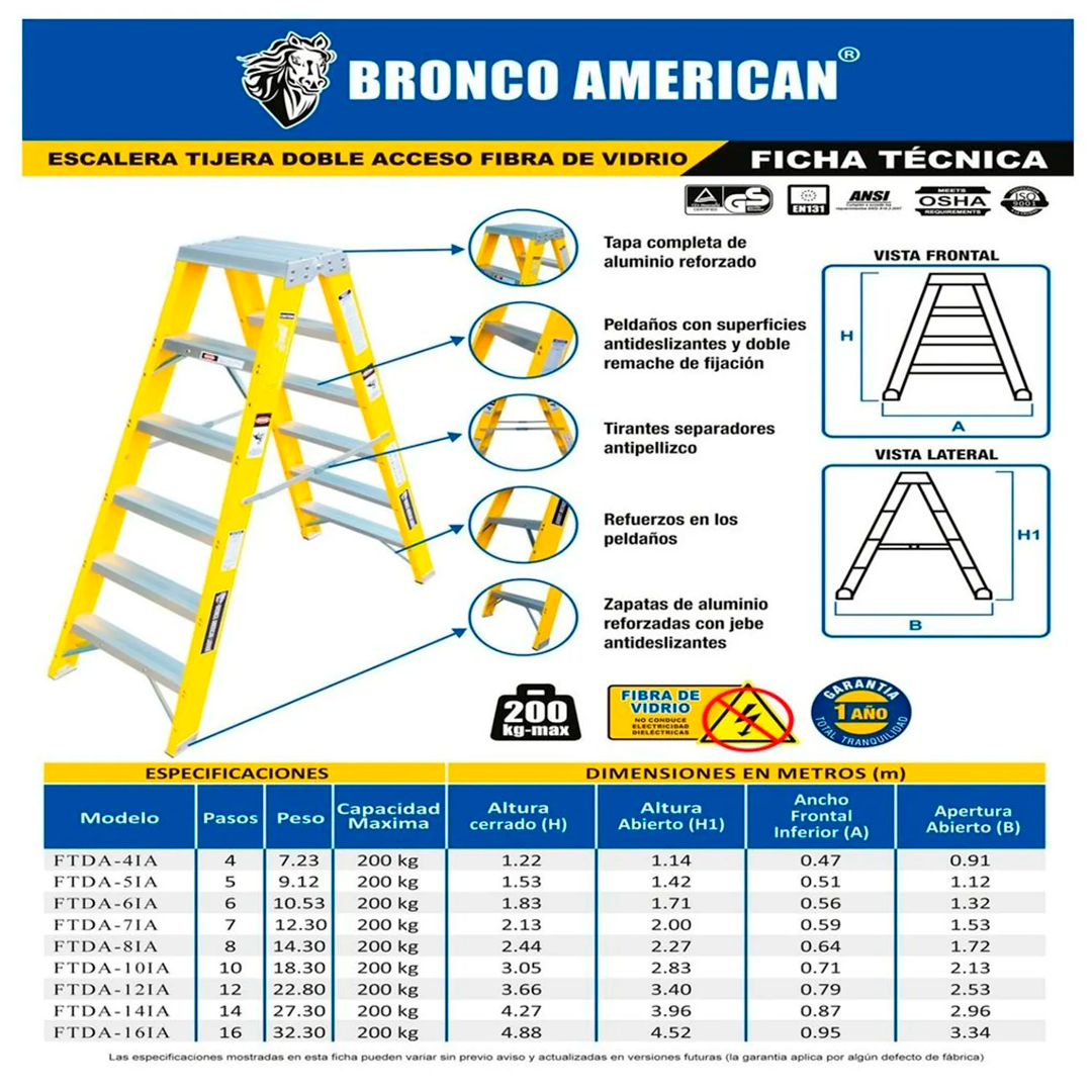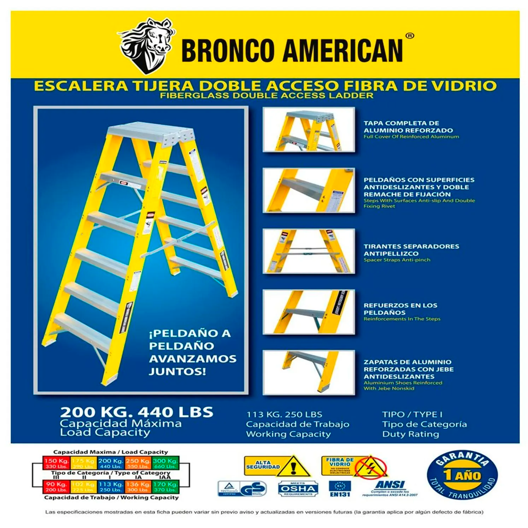 Sé el primero en valorar “Escalera Fibra de Vidrio Tijera Doble Ascenso de 8 Pasos Bronco American Ladder”