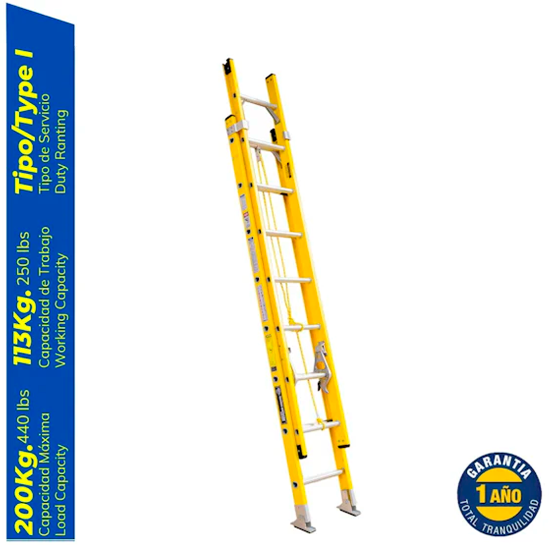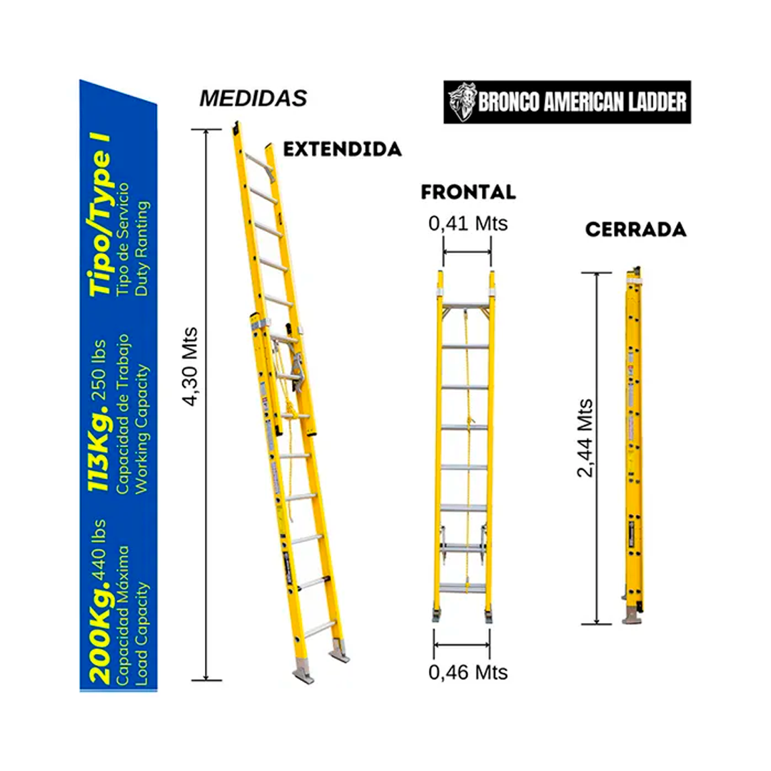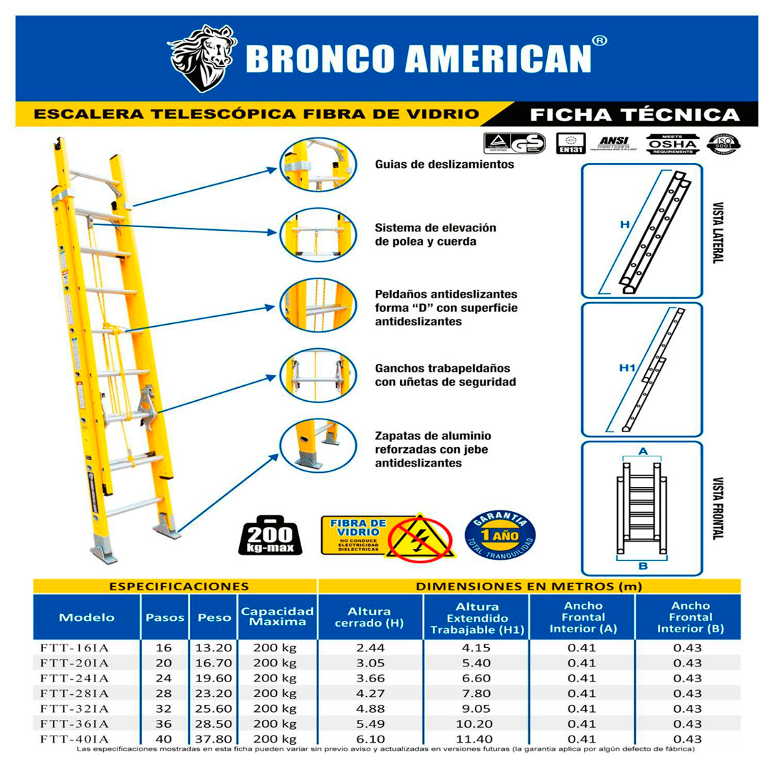 Escalera telescópica de fibra de vidrio de 16 pasos Bronco American Ladder