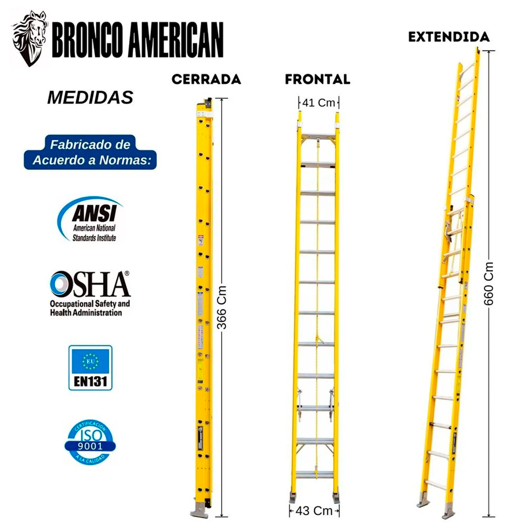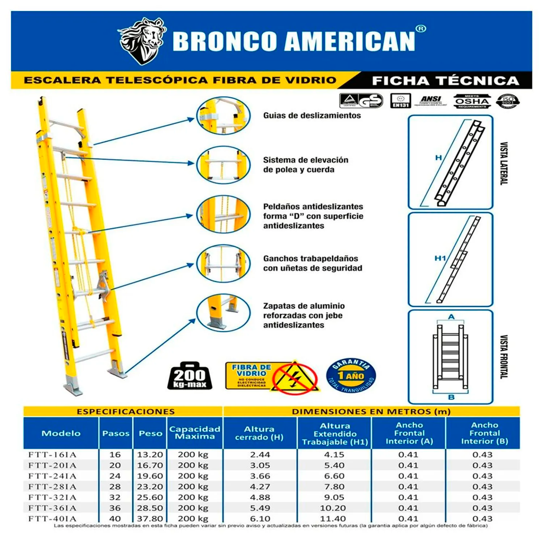 Escalera telescópica de fibra de vidrio de 24 pasos Bronco American Ladder