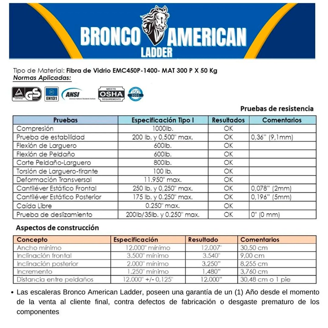 Sé el primero en valorar “Escalera telescópica de fibra de vidrio de 24 pasos Bronco American Ladder”