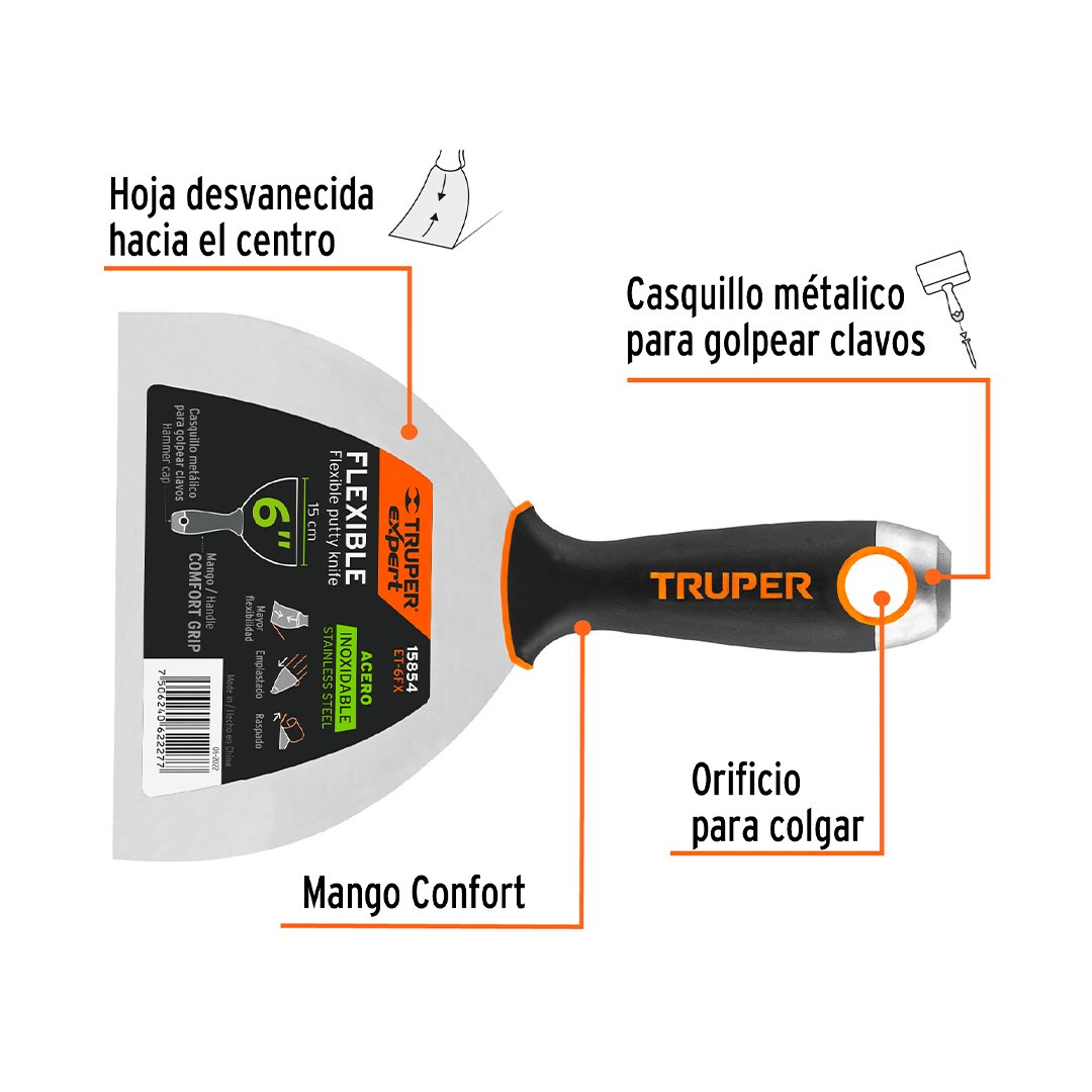 Espátula flexible 6″ acero inoxidable, mango Comfort Grip TRUPER