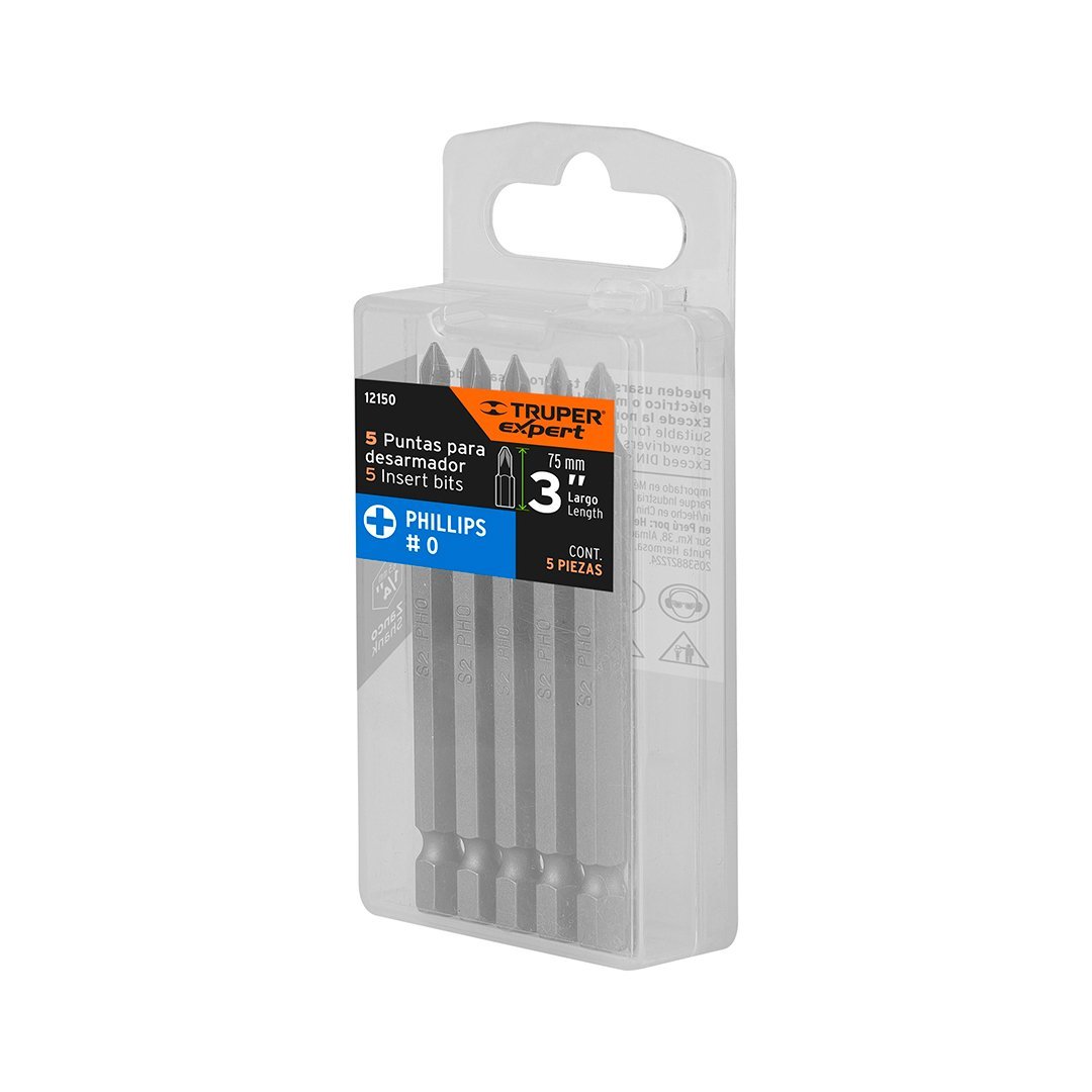 Estuche con 5 puntas de cruz PH0 largo 3″ TRUPER