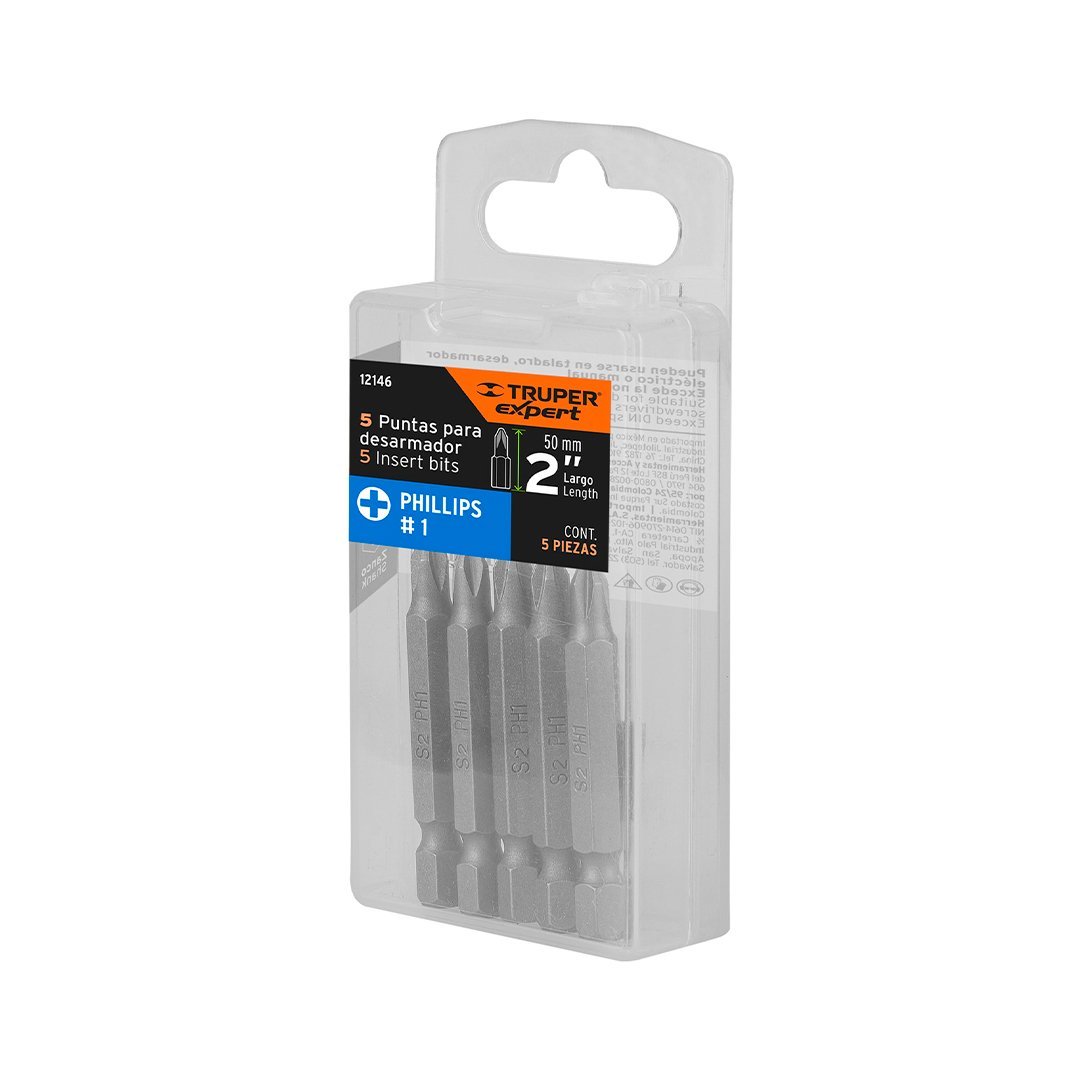 Estuche con 5 puntas de cruz PH1 largo 2″ TRUPER