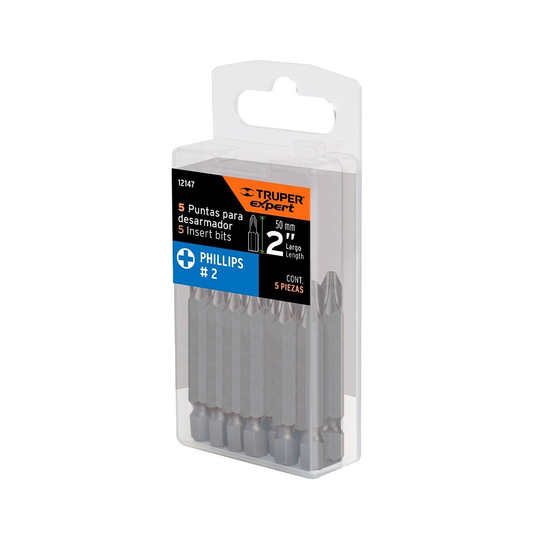 Estuche con 5 puntas de cruz PH2 largo 2″ TRUPER