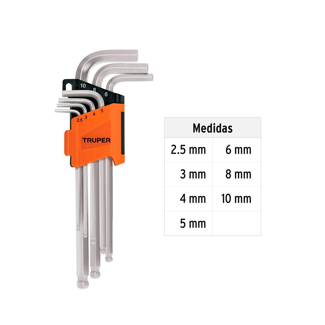 Juego 7 llaves allen largas mm punta bola con organizador TRUPER