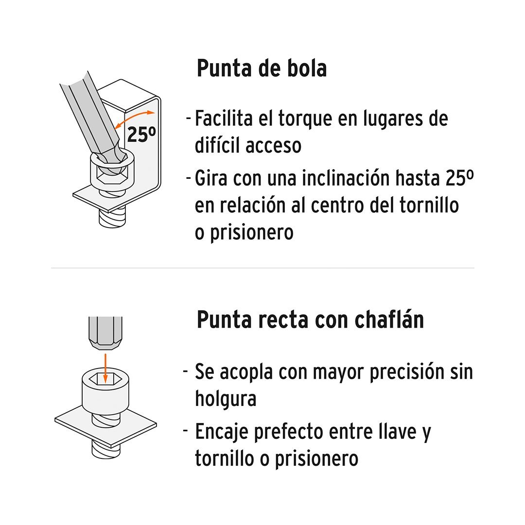 Contenido   7 llaves (2.5 mm, 3 mm, 4 mm, 5 mm, 6 mm, 8 mm y 10 mm)